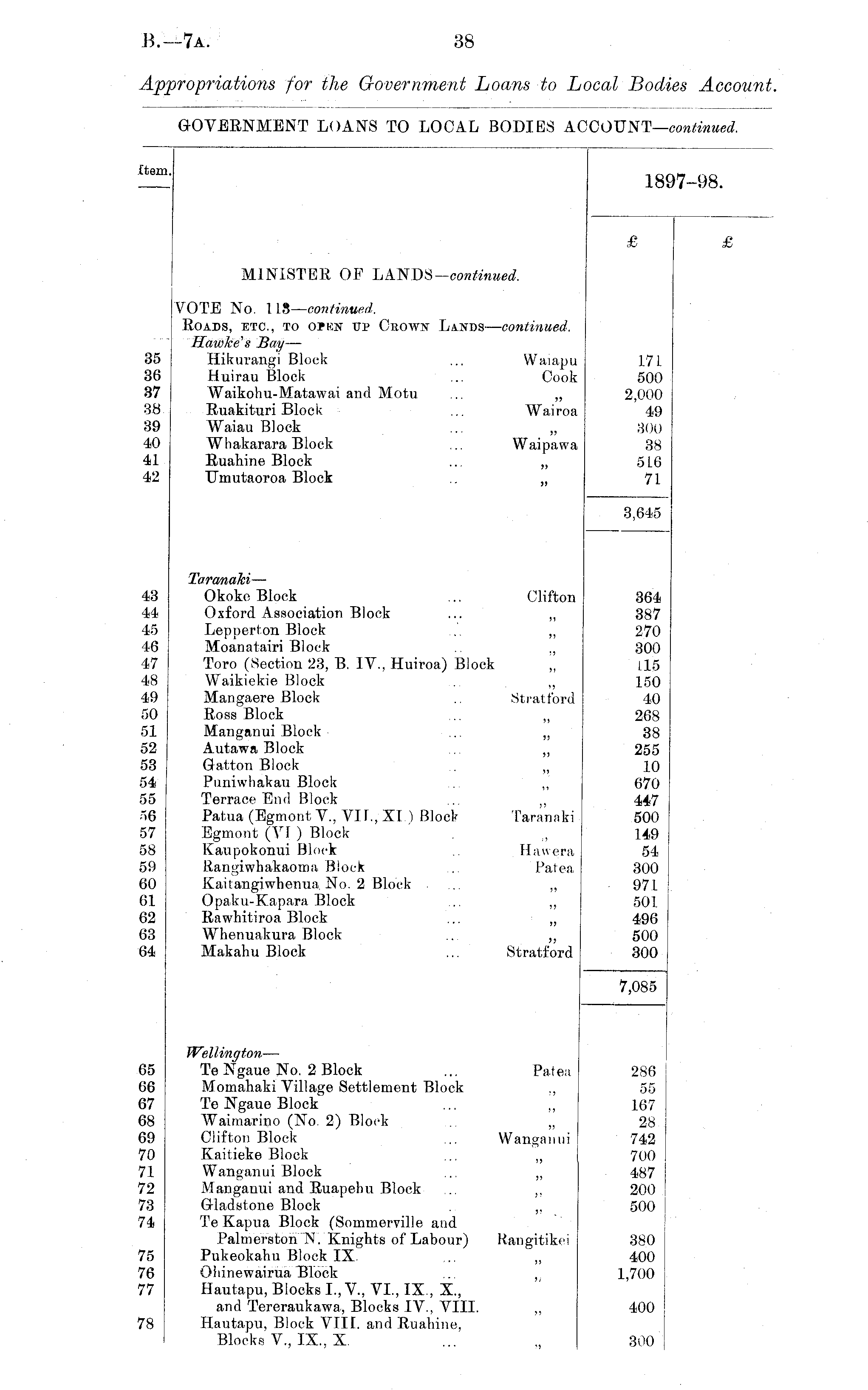 item. 18' 7-98. C MINISTER OP LANDS— continued. 35 36 37 38. 39 40 41 42 VOTE No. US—continued. Roads, etc., to opkn up Cbown Lands — continued. Hawke's Bay — Hikurangi Block ... Waiapu Huirau Block ... Cook Waikohu-Matawai and Motu ... „ Ruakituri Block ... Wairoa Waiau Block ... „ Whakarara Block ... Waipawa Euahine Block ... „ Umutaoroa Block .. „ 171 500 2,000 49 300 38 516 71 3,645 43 44 45 46 47 48 49 50 51 52 53 54 55 56 57 58 59 60 61 62 63 64 Taranaki — Okoko Block ... Clifton Oxford Association Block ... „ Lepperton Block ..'. „ Moanatairi Block .. „ Toro (Section 23, B. IV., Huiroa) Block Waikiekie Block ... ,, Mangaere Block .. Stratford Ross Block ... ,, Manganui Block ... ,, Autawa Block ... ,, Gatton Block .. ,, Puniwhakau Block ,, Terrace End Block ... ., Patua (Egmont V., VII., XI ) Block Taranaki Bgmont (VI ) Block Kaupokonui Block .. Hawera Rangiwhakaoma Block Patea Kaitangiwhenua No. 2 Block ... ,, Opaku-Kapara Block ... „ Rawhitiroa Block ... „ Whenuakura Block ... ,, Makahu Block ... Stratford 364 387 270 300 115 150 40 268 38 255 10 670 447 500 149 54 300 ■ 97 L 501 496 500 300 7,085 !5 i6 17 '.8 19 '0 1 '2 r 3 4 Wellington — Te Ngaue No. 2 Block ... Patea Momahaki Village Settlement Block ., Te Ngaue Block Waimarino (No. 2) Block .. „ Clifton Block ... Wangamii Kaitieke Block ... n Wanganui Block ... „ Manganui and R,uapehu Block Gladstone Block . Te Kapua Block (Sommerville and Palmerston N. Knights of Labour) Hangitikei Pukeokahu Block IX. Oliinewairua Block .. , Hautapu, Blocks I., V., VI., IX, X, and Tereraukawa, Blocks IV., VIII. Hautapu, Block VIII. and Ruahine, Blocks V., IX., X. 286 55 167 28 742 700 487 I 200 ! 500 '5 6 7 380 400 1,700 8 400 ! 300