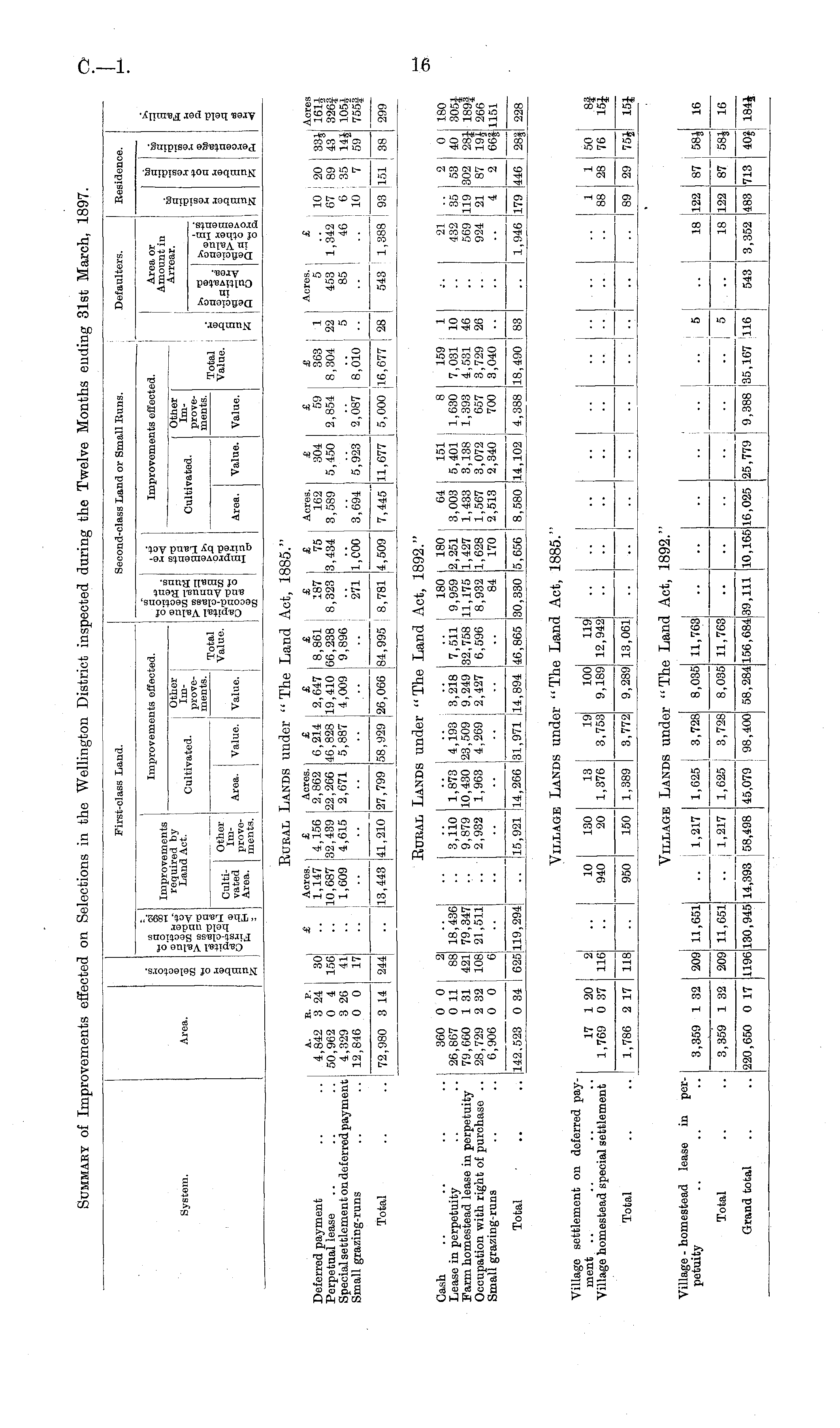 Summary of Improvements effected on Selections in the Wellington District inspected during the Twelve Months ending 31st March, 1897.