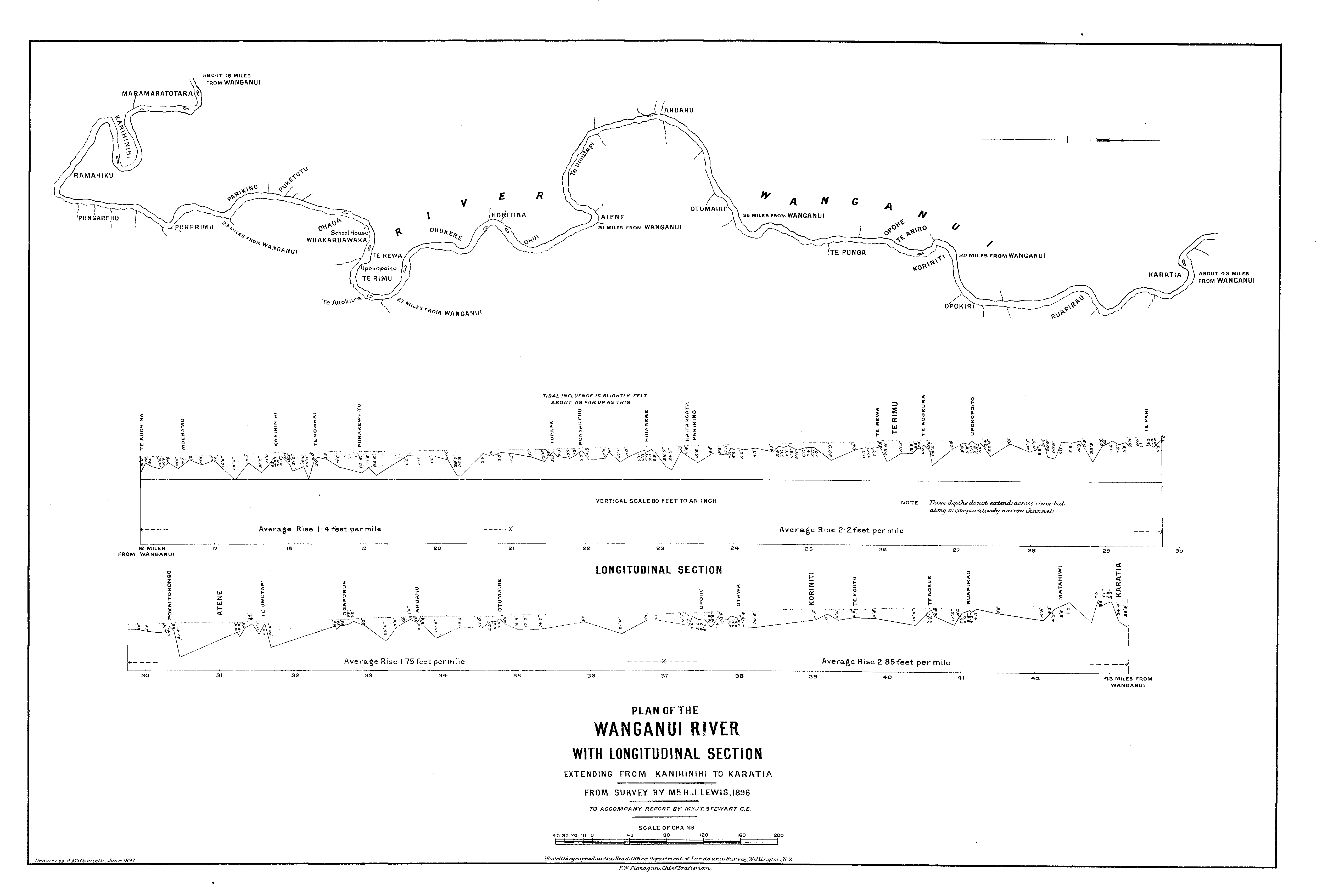 PLAN OF THE WANGANUI RIVER WITH LONGITUDINAL SECTION EXTENDING FROM KANIHINIHI TO KARATIA