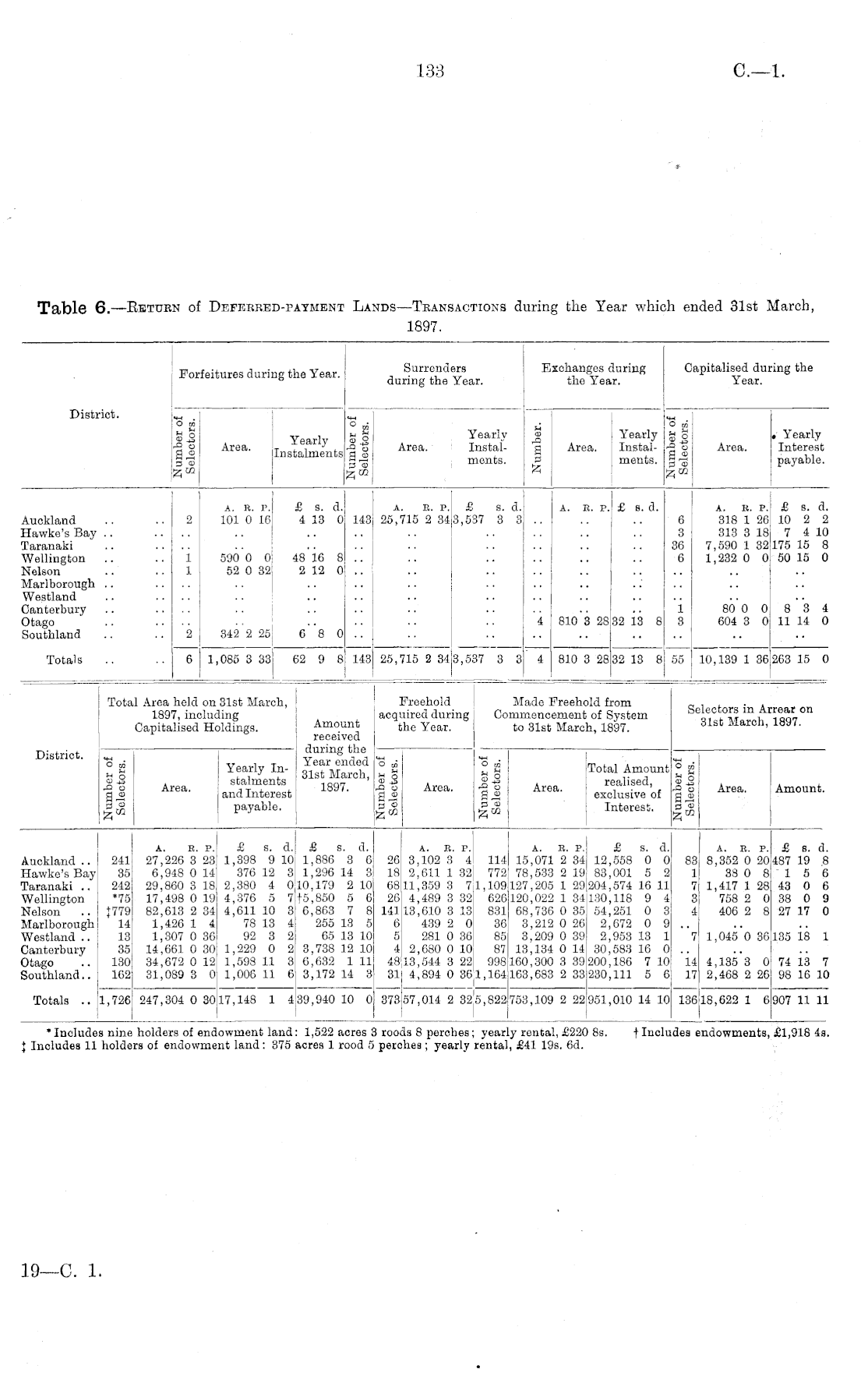 Table 6. — Return of Deferred-payment Lands—Transactions during the Year which ended 31st March, 1897.