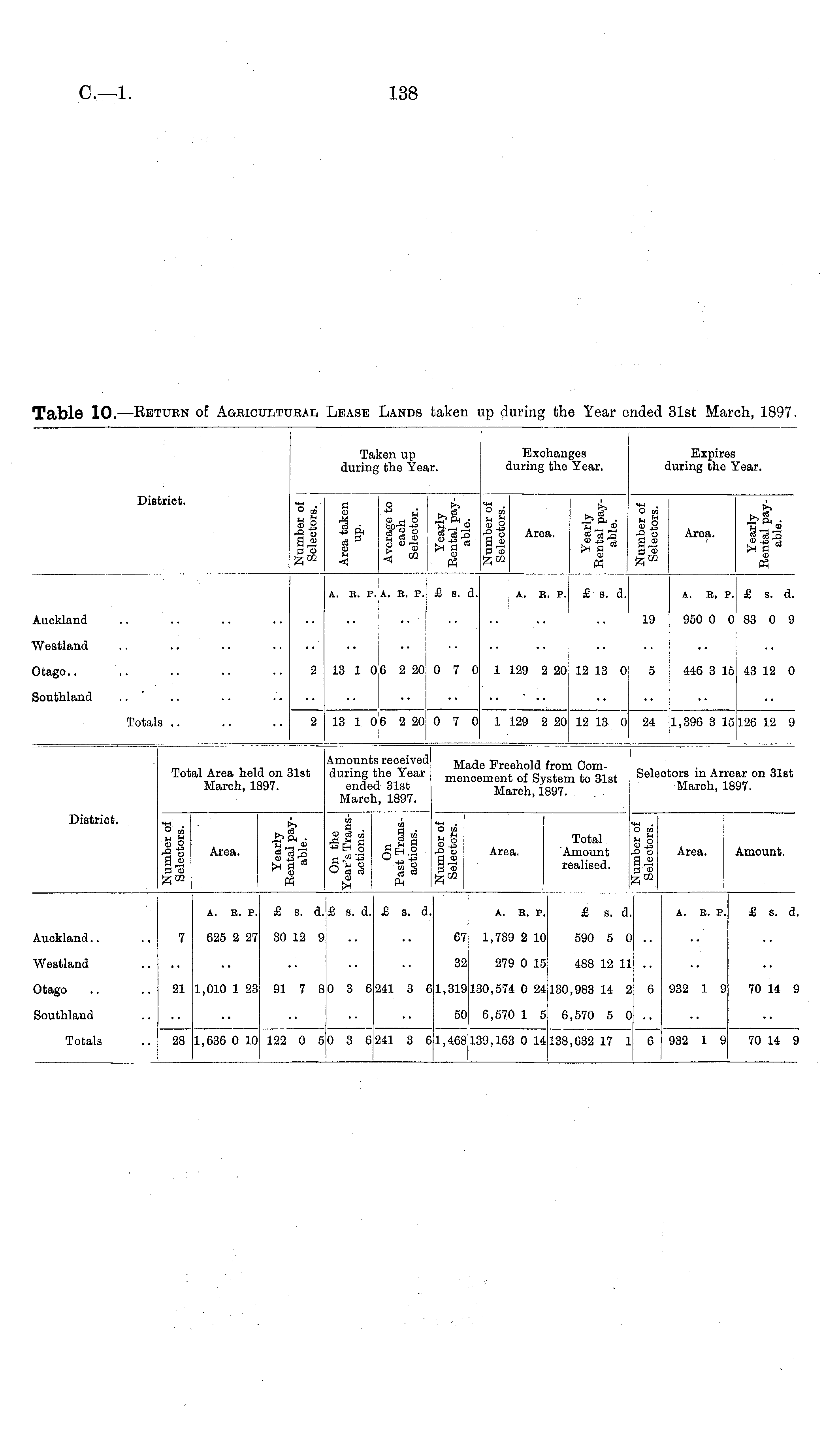 Table 10. —Return of Agricultural Lease Lands taken up during the Year ended 31st March, 1897.