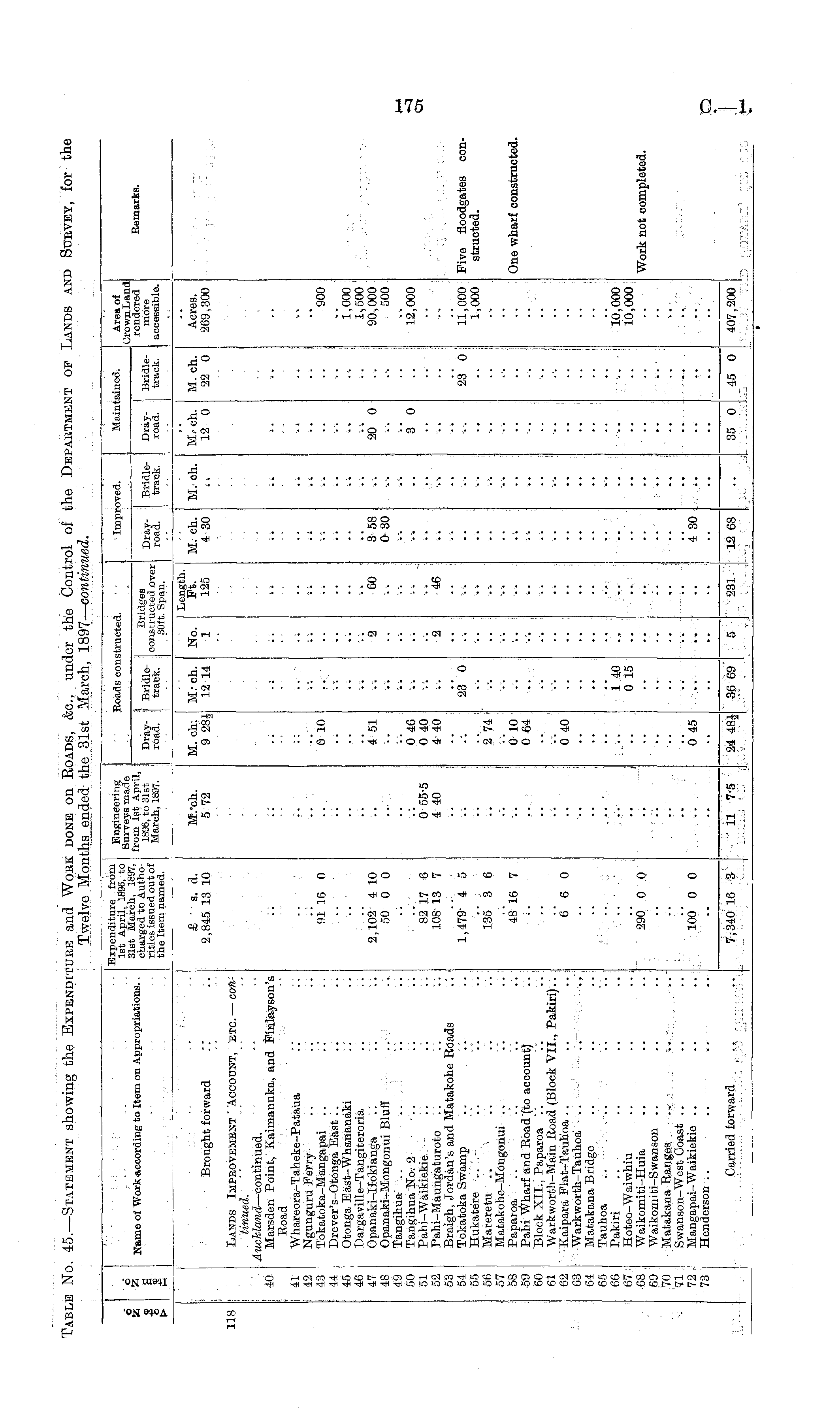 Table No. 45.—Statement showing the Expenditure and Work done on Roads, &c., under the Control of the Department of Lands and Survey, for the Twelve Months ended the 31st March, 1897— continued.
