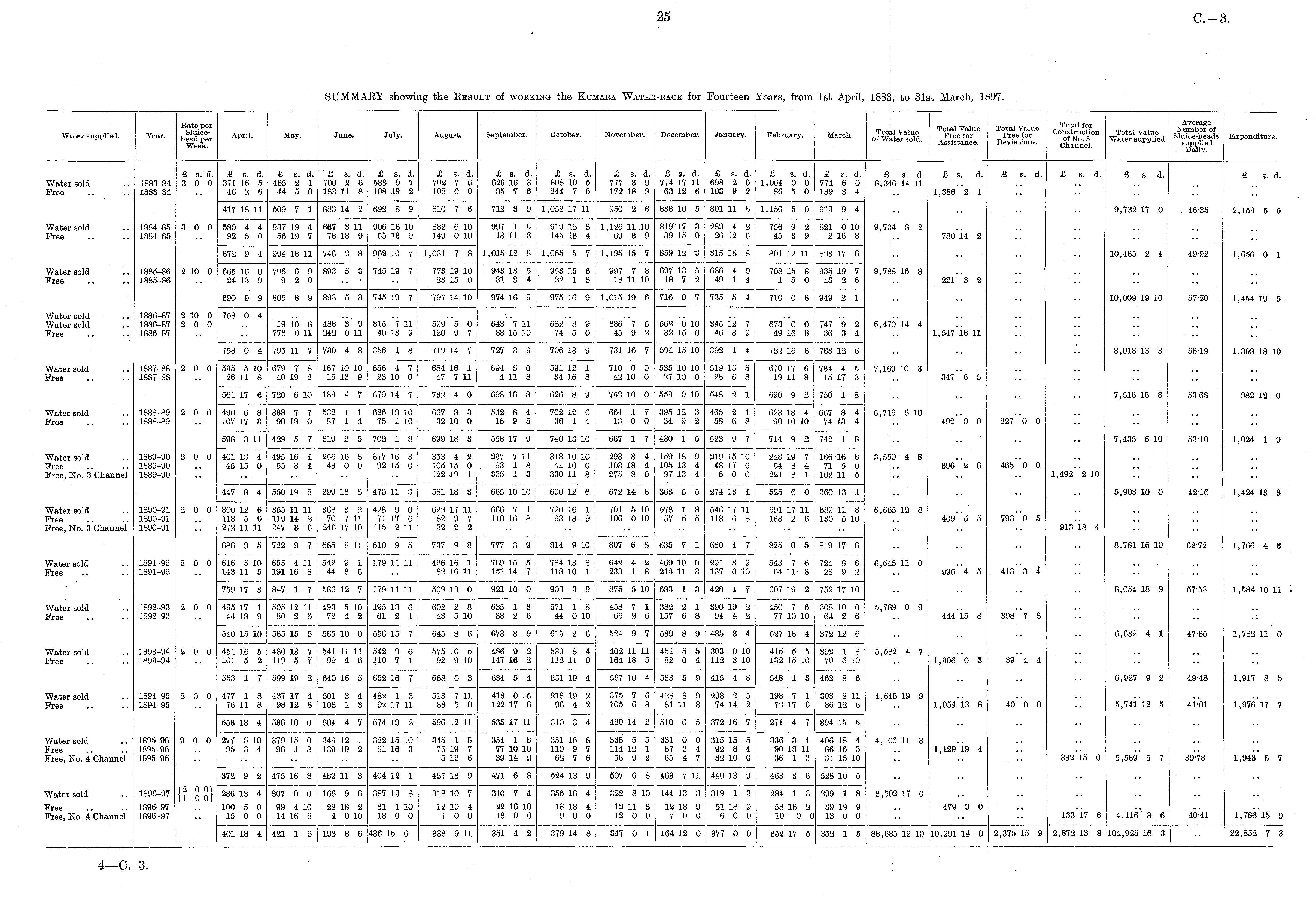 SUMMARY showing the Result of working the Kumara Water-race for Fourteen Years, from 1st April, 1883, to 31st March, 1897.