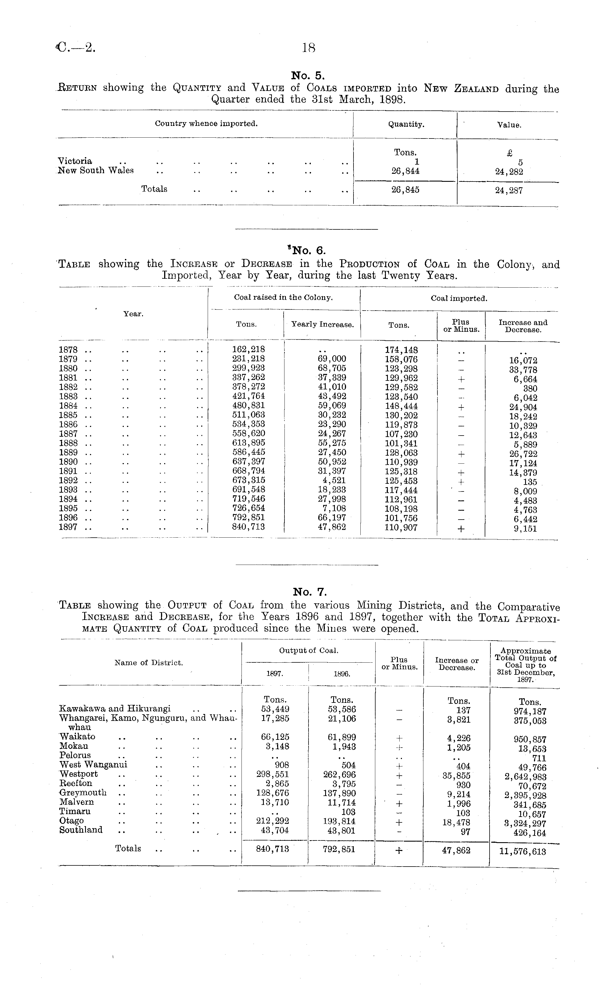 No. 5. Return showing the Quantity and Value of Coals imported into New Zealand during the Quarter ended the 31st March, 1898.