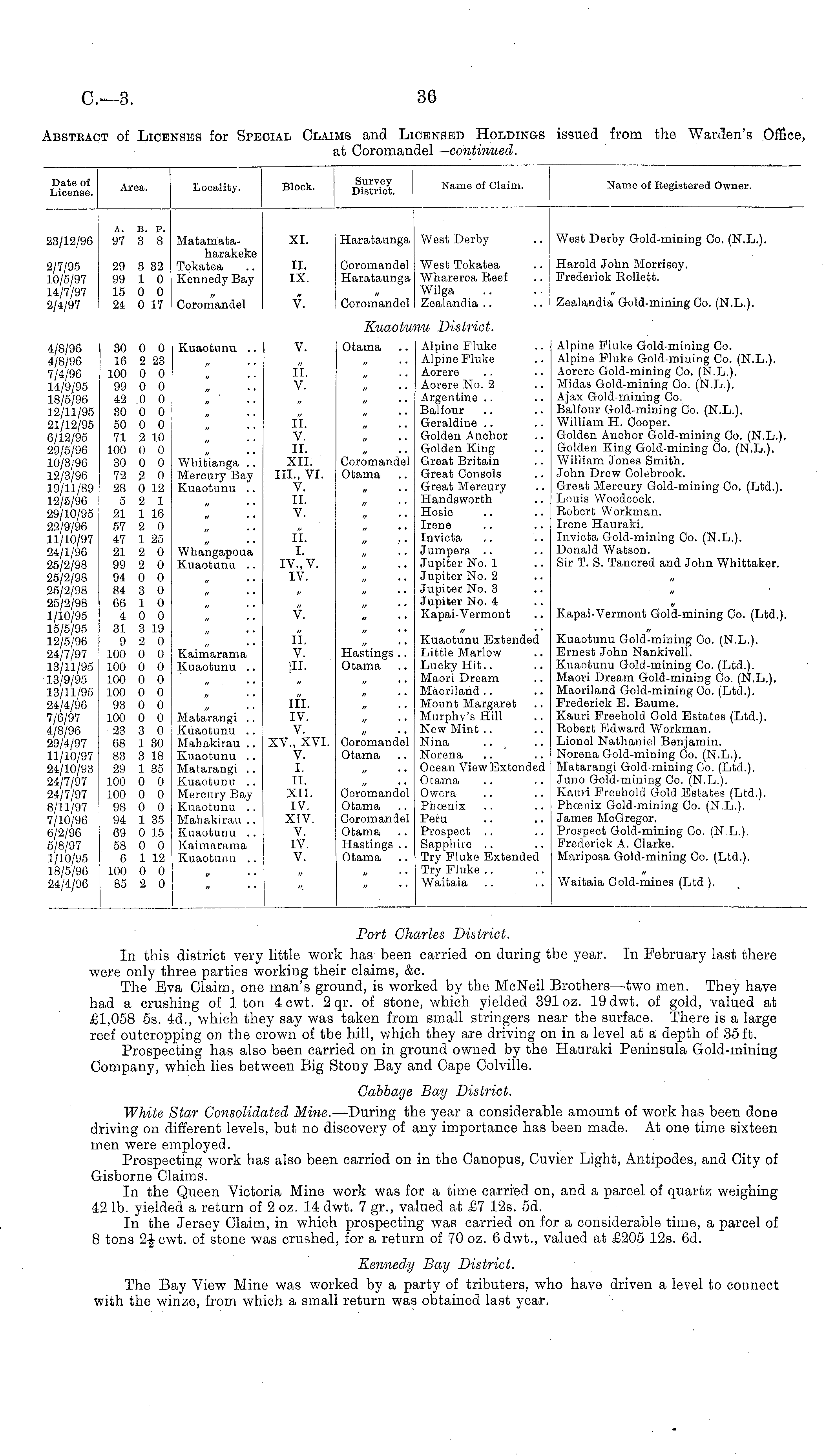 Abstract of Licenses for Special Claims and Licensed Holdings issued from the Warden's Office, at Coromandel —continued.