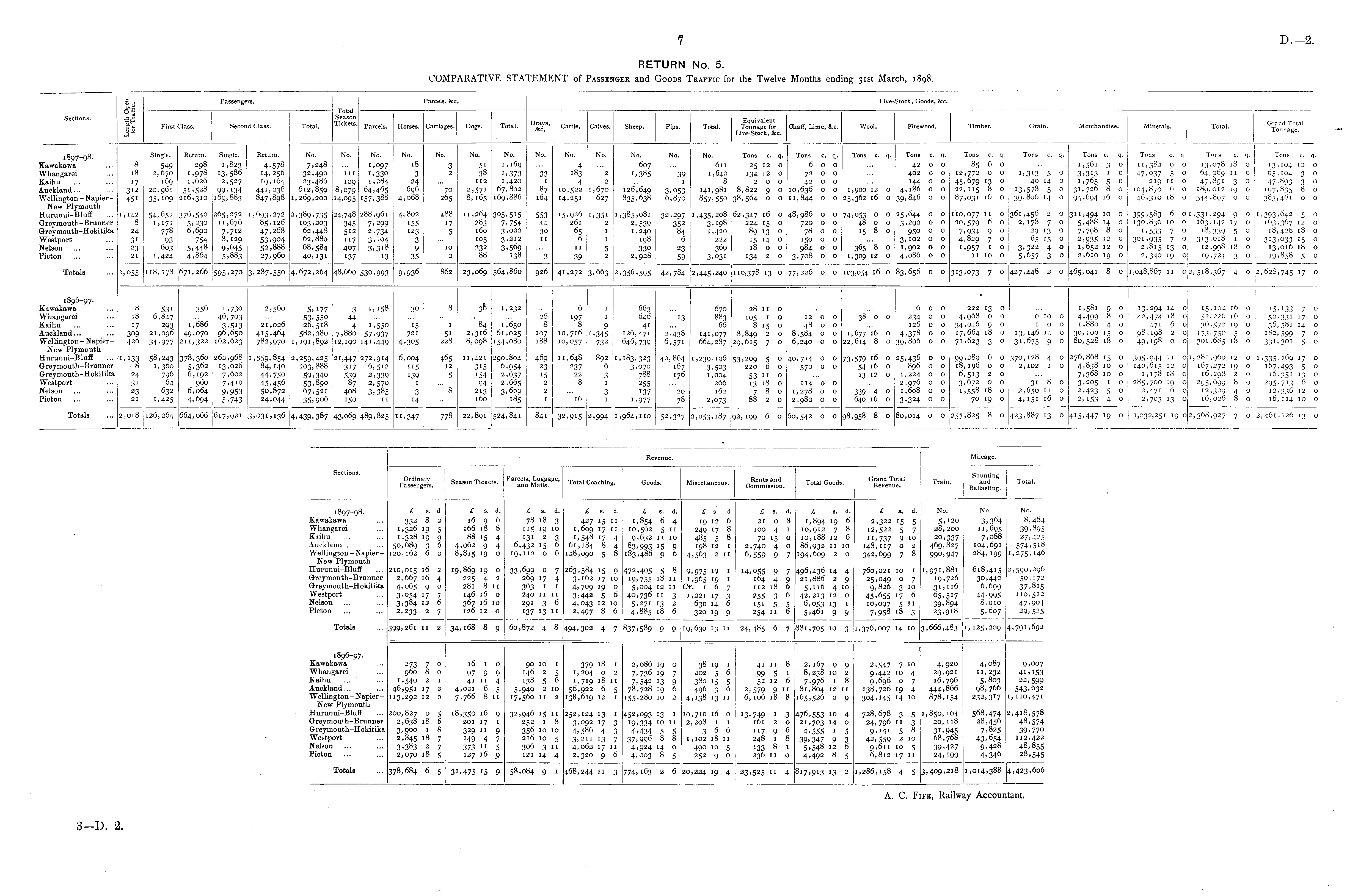 RETURN No. 5. COMPARATIVE STATEMENT of Passenger and Goods Traffic for the Twelve Months ending 31st March, 1898.