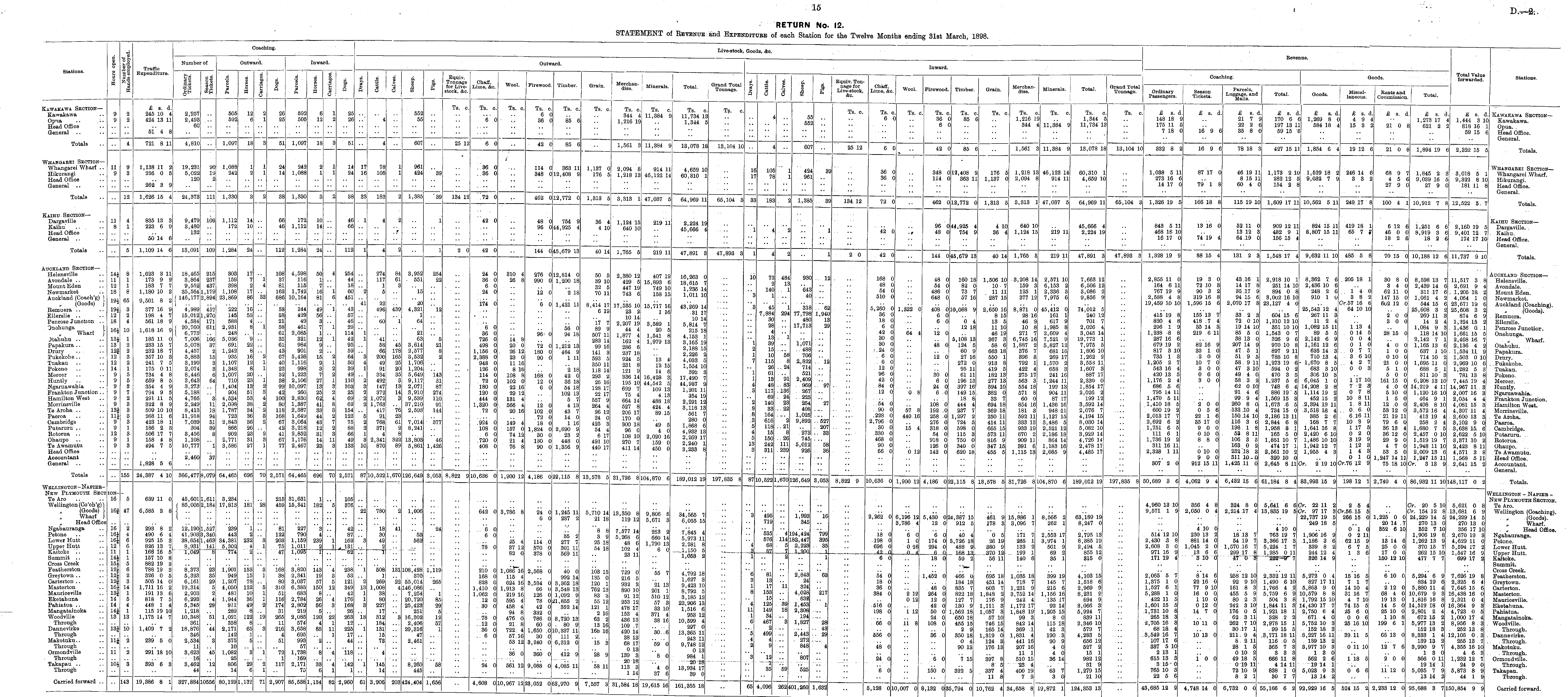 RETURN No. 12. STATEMENT of Revenue and Expenditure of each Station for the Twelve Months ending 31st March, 1898.