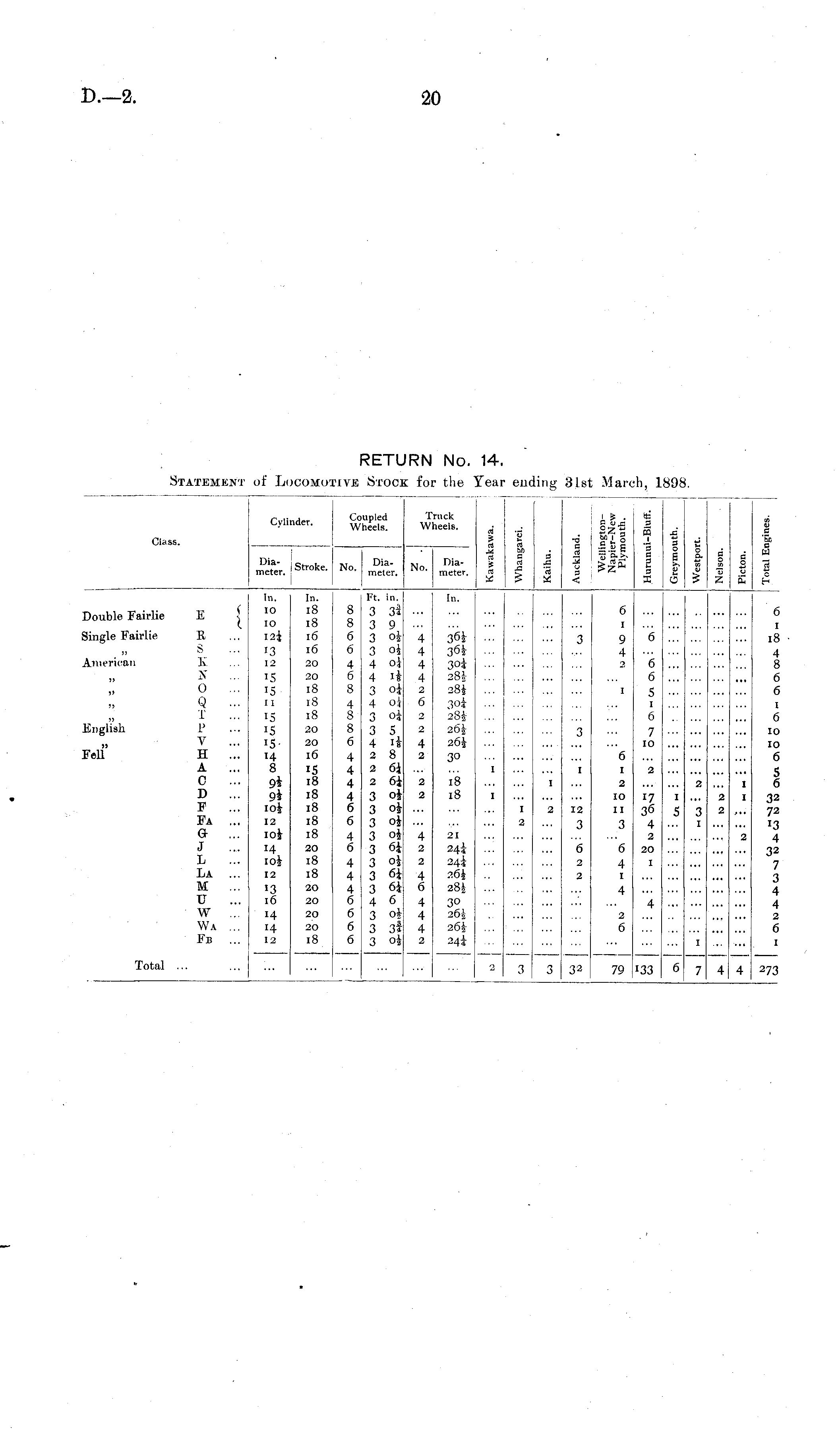 RETURN No. 14. Statement of Locomotive Stock for the Year ending 31st March, 1898.