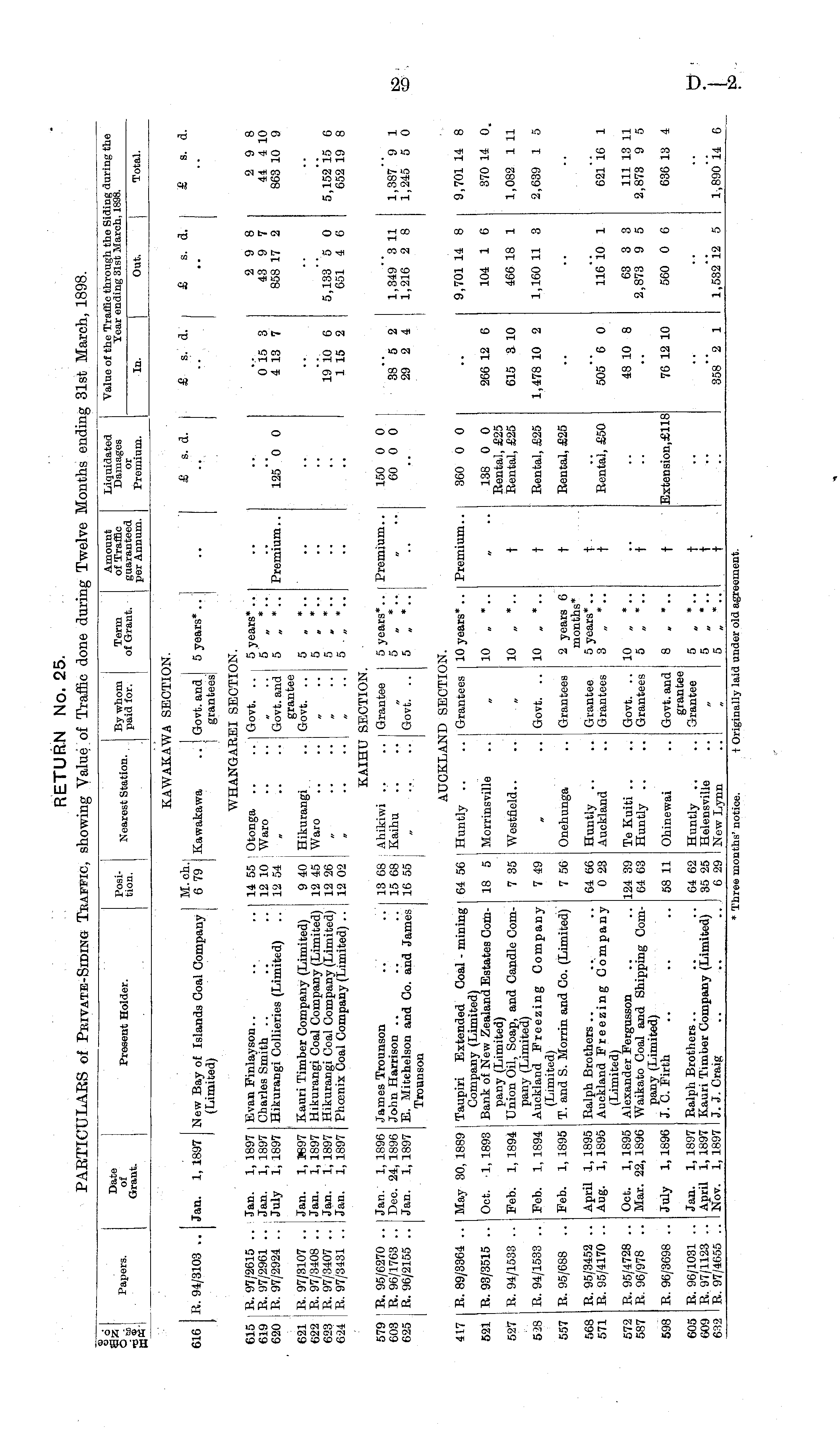 RETURN No. 25. PARTICULARS of Private-Siding Traffic, showing Value of Traffic done during Twelve Months ending 31st March, 1898.