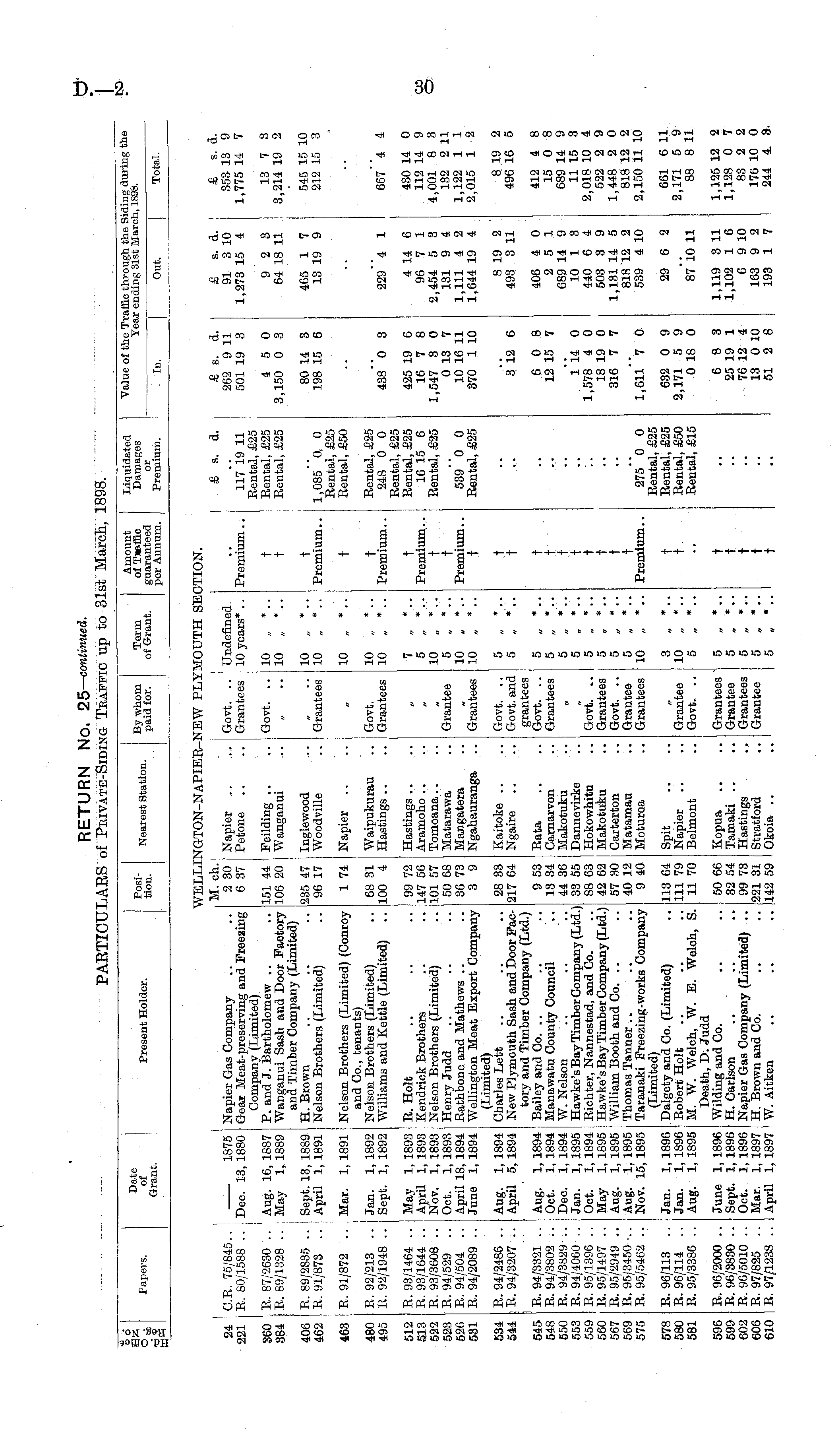 RETURN No. 25— continued. PARTICULARS of Private-Siding Traffic up to 31st March, 1898.