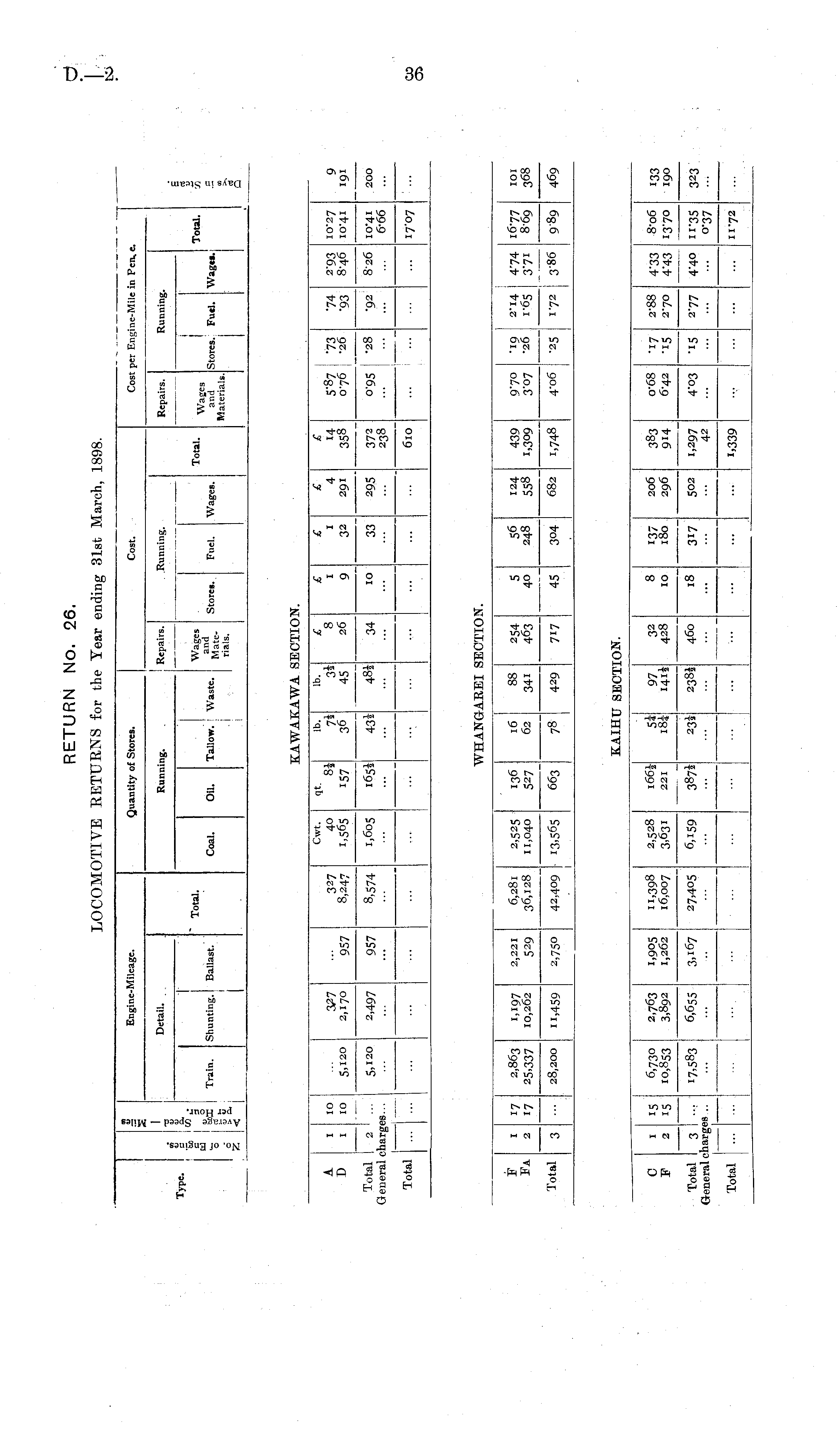 RETURN No. 26. LOCOMOTIVE RETURNS for the Year ending 31st March, 1898.
