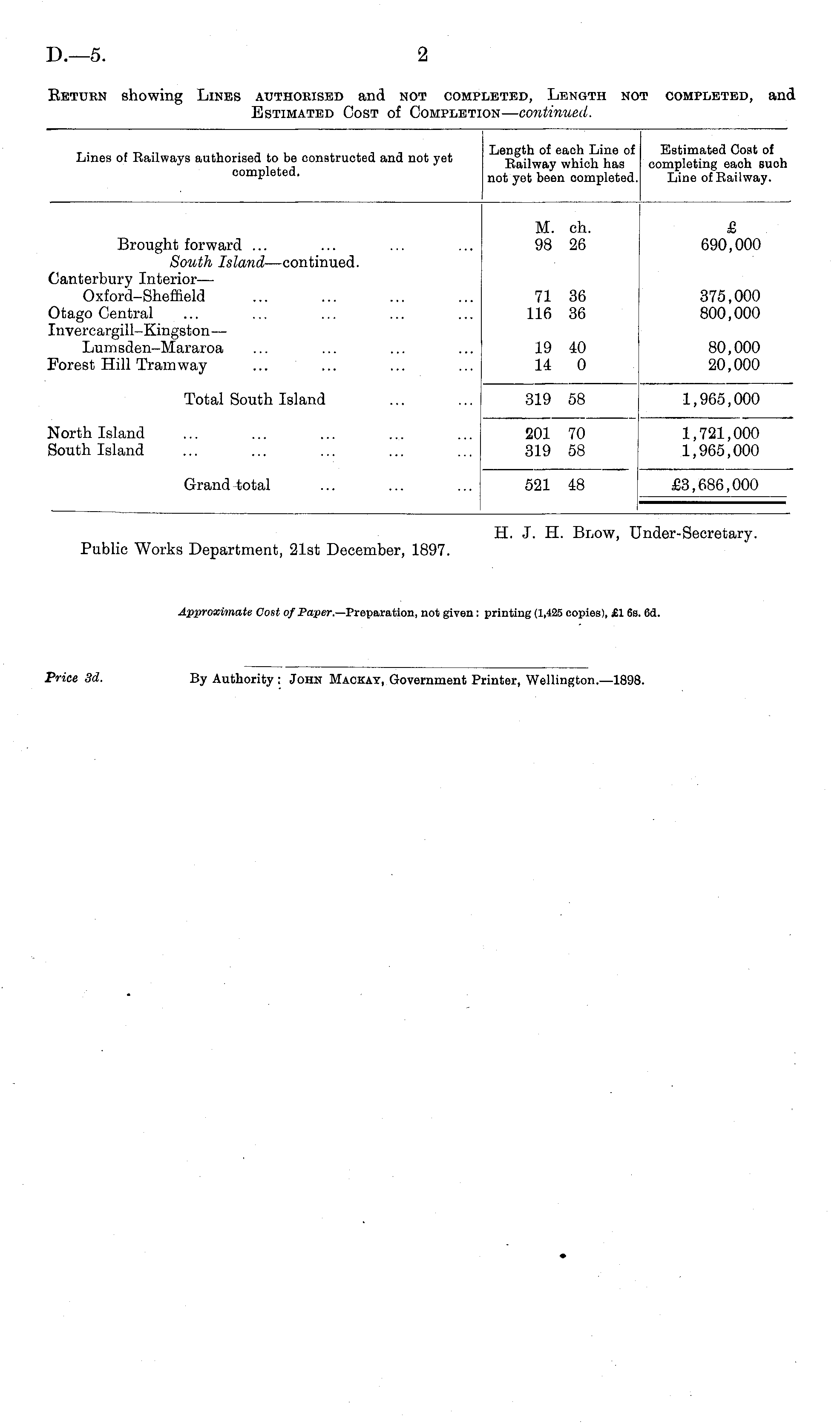 H. J. H. Blow, Under-Secretary. Public Works Department, 21st December, 1897. Approximate Cost of Paper.— Preparation, not given: printing (1,425 copies), £1 6s. 6d.
