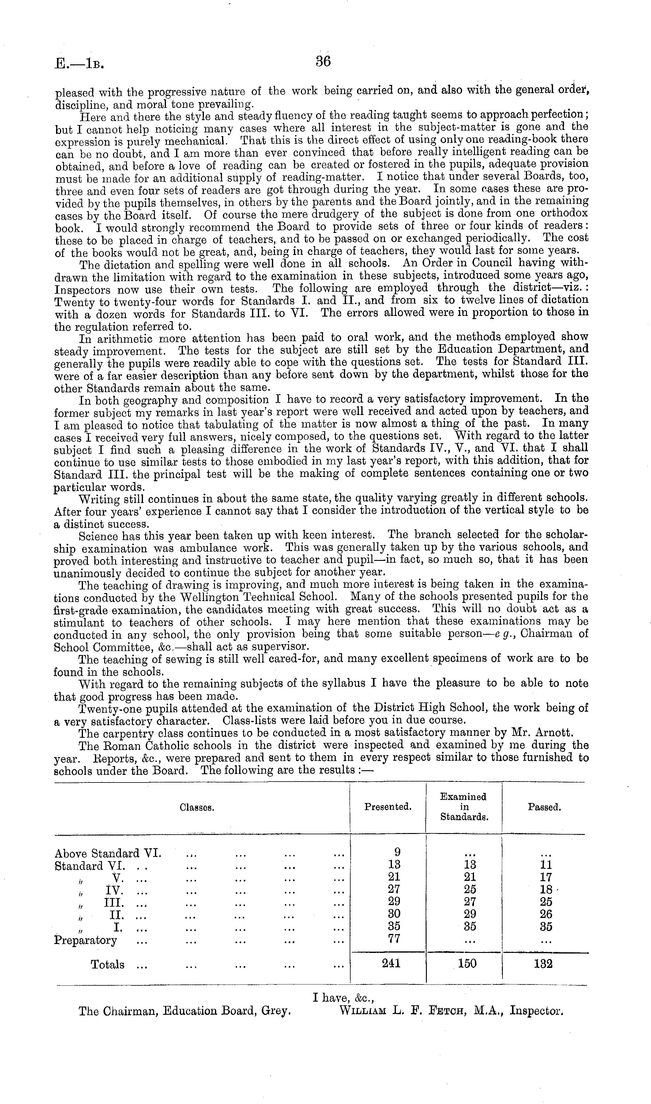 I have, &c, The Chairman, Education Board, Grey, William L. 11.I 1 . Fetch, M.A., Inspector.