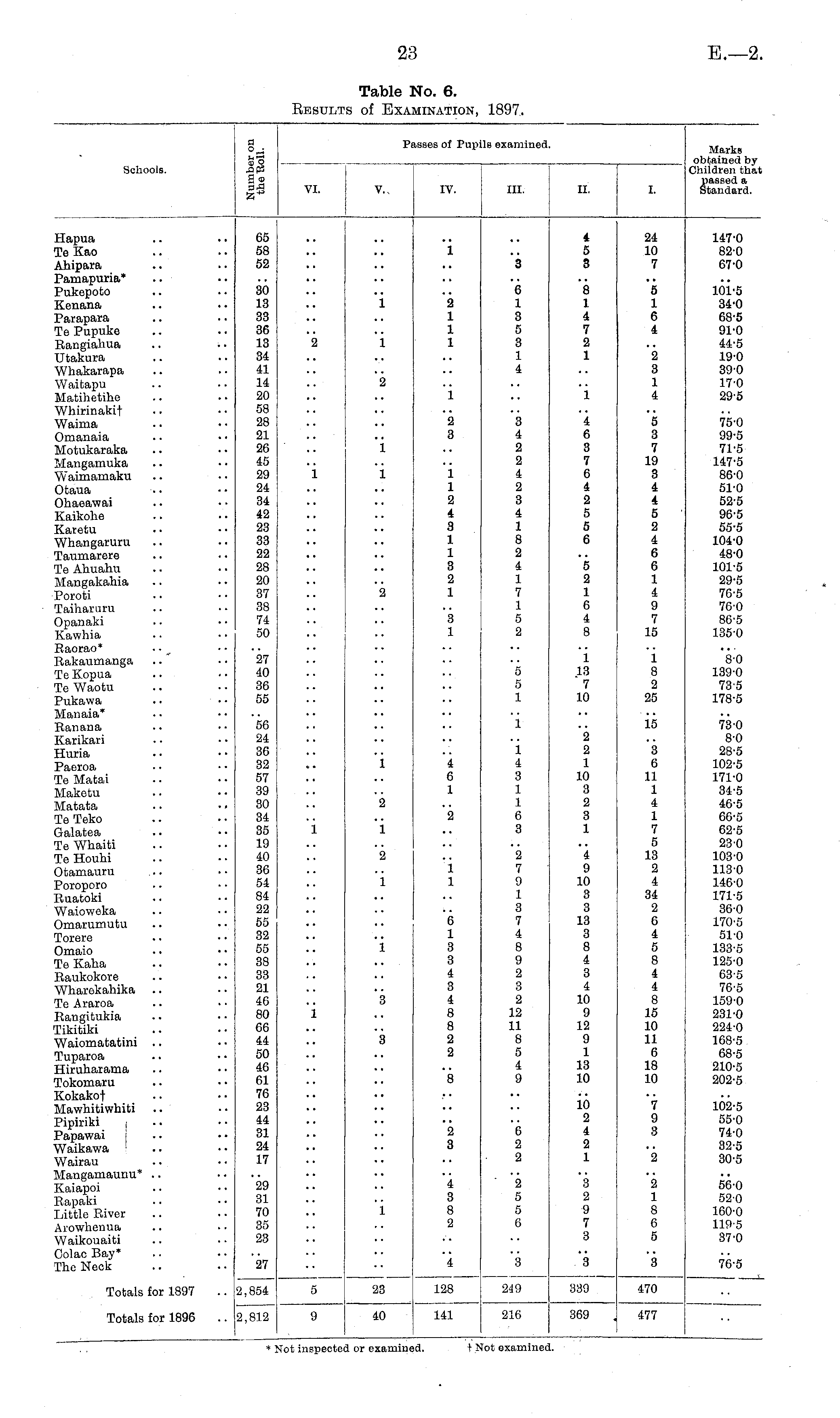 Schools. a 1$ ga vi. jSaes of Pupi ils examined. Marks obtained by Children that passed a Standard. V.. IV. III. II, I. Hapua Tβ Kao Ahipara Pamapuria* Pukepoto Kenana Parapara Tβ Pupuke Rangiahua Utakura Whakarapa Waitapu Matihetihe Whirinakif Waima Omanaia Motukaraka Mangamuka Waimamaku Otaua Ohaeawai Kaikohe Karetu Whangaruru Taumarere Tβ Ahuahu Mangakahia Poroti Taiharuru Opanaki Kawhia Raorao* Rakaumanga Te Kopua Te Waotu Pukawa Manaia* Ranana Karikari Huria Paeroa Te Matai Maketu Matata Tβ Teko Galatea Te Whaiti Te Houhi Otamauru Poroporo Ruatoki Waioweka Omarumutu Torere Omaio Te Kaha Raukokore Wharekahika Te Araroa Rangitukia Tikitiki Waiomatatini .. Tuparoa Hiruharama Tokomam Kokakof Mawhitiwhiti Pipiriki Papawai Waikawa Wairau Mangamaunu* .. Kaiapoi Rapaki Little River Arowhenua Waikouaiti Colao Bay* The Neck 65 58 52 i 3 4 5 3 24 10 7 147-0 82-0 67-0 30 13 33 36 13 34 41 14 20 58 28 21 26 45 29 24 34 42 23 33 22 28 20 37 38 74 50 i 2 1 1 1 6 1 3 5 3 1 4 8 1 4 7 2 1 5 1 6 4 101-5 34-0 68-5 91-0 44-5 19-0 39-0 17-0 29-5 2 i "2 2 3 1 4 1 i i •• *i i '2 3 1 1 2 i 3 1 1 3 2 1 3 4 2 2 4 2 3 4 1 8 2 4 1 7 1 5 2 4 6 3 7 6 4 2 5 5 6 5 3 7 19 3 4 4 5 2 4 6 6 1 4 9 7 15 75-0 99-5 71-5 147-5 86-0 51-0 52-5 96-5 55-5 104-0 48-0 101-5 29-5 76-5 76-0 86-5 135-0 2 5 2 1 6 4 8 '3 1 27 40 36 55 .. 5 5 1 1 13 7 10 1 8 2 25 8-0 139-0 735 178-5 56 24 36 32 57 39 30 34 35 19 40 36 54 84 22 55 32 55 38 33 21 46 80 66 44 50 46 61 76 23 44 31 24 17 1 2 2 1 10 3 2 3 1 15 73-0 8-0 28-5 102-5 171-0 34-5 46-5 66-5 62-5 23-0 103-0 113-0 146-0 171-5 36-0 170-5 51-0 133-5 125-0 63-5 76-5 159-0 231-0 224-0 168-5 68-5 210-5 202-5 i 4 6 1 1 4 3 1 1 6 3 3 6 11 1 4 1 7 5 13 2 4 34 2 6 4 5 8 4 4 8 15 10 11 6 18 10 '2 2 1 i '2 1 1 'i 1 6 1 3 3 4 3 4 8 8 2 2 2 7 9 1 3 7 4 8 9 2 3 2 12 11 8 5 4 9 4 9 10 3 3 13 3 8 4 3 4 10 9 12 9 1 13 10 '3 1 '3 *8 2 3 6 2 2 10 2 4 2 1 7 9 3 102-5 55-0 74-0 32-5 30-5 2 29 31 70 35 23 1 4 3 8 2 2 5 5 6 3 2 9 7 3 2 1 8 6 5 56-0 52-0 160-0 119-5 37-0 27 4 '3 3 *3 76-5 Totals for 1897 2,854 5 23 128 249 339 470 Totals for 1896 2,812 40 141 216 369 477 ot inspected or examined. \ Not examined.