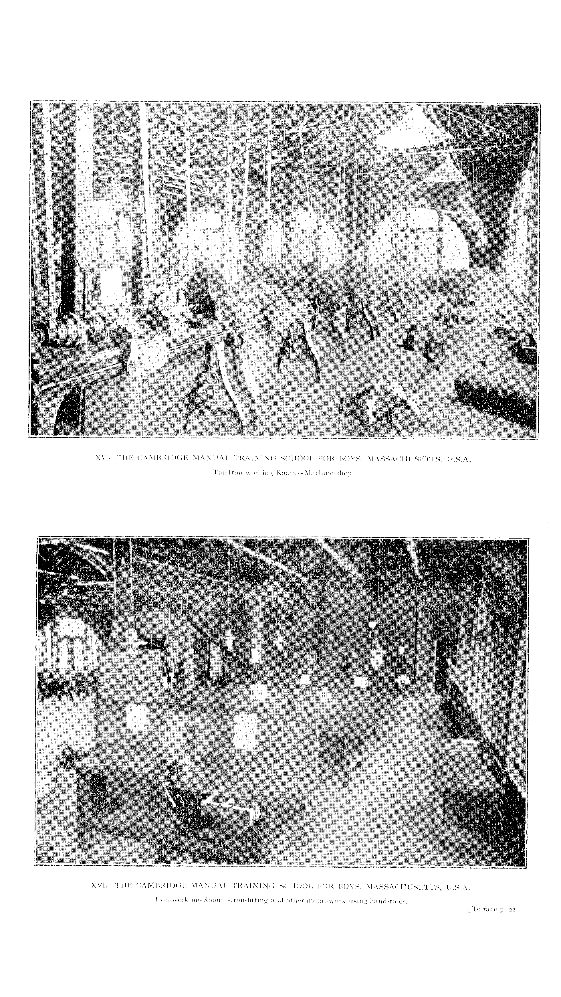 XVI.—THE CAMBRIDGE MANUAL TRAINING SCHOOL FOR BOYS, MASSACHUSETTS, U.S.A. Iron-working-Room—Iron-fifting and other metal-work using hand-tools. [To face p. 22.