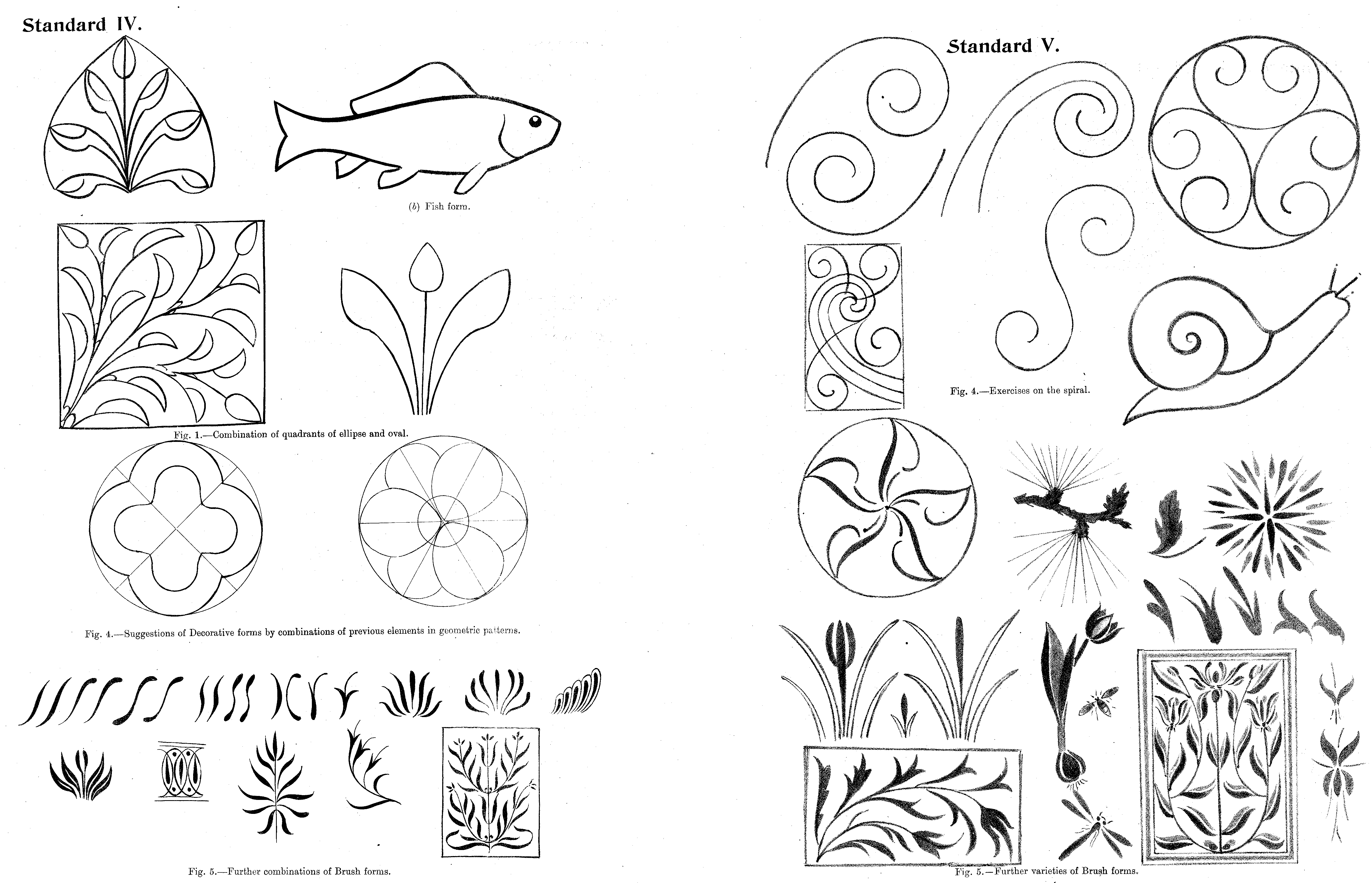 Fig. 4.-Suggestions of Decorative forms by combinations of previous elements in geometric patterns.