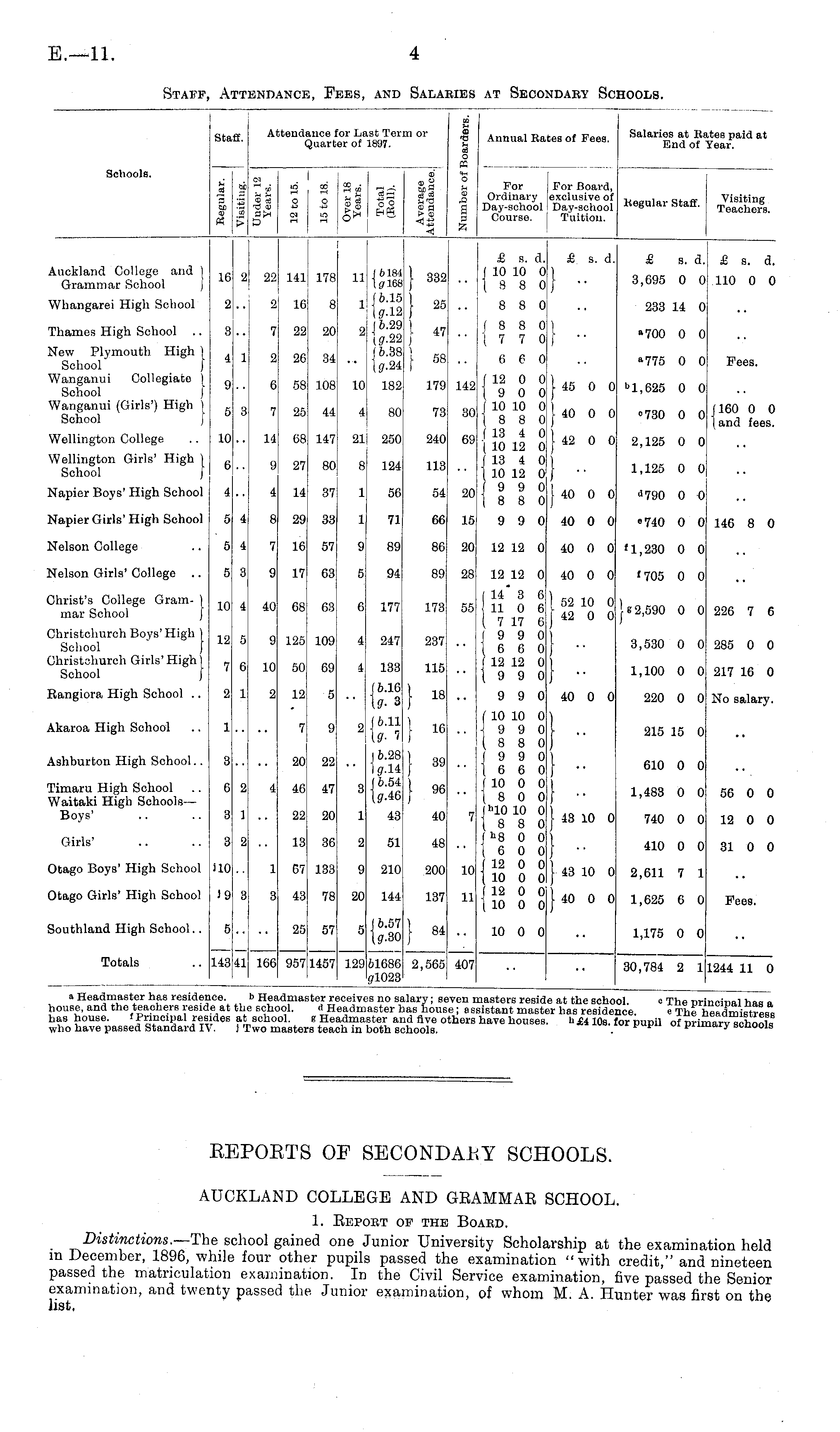 EEPOETS OF SECONDARY SCHOOLS. AUCKLAND COLLEGE AND GEAMMAB SCHOOL. 1. EePOET OF THE BOAED. Distinctions.— The school gained one Junior University Scholarship at the examination held m December, 1896, while four other pupils passed the examination "with credit," and nineteen passed the matriculation examination. In the Civil Service examination, five passed the Senior examination, and twenty passed the Junior examination, of whom M. A. Hunter was first on the list.