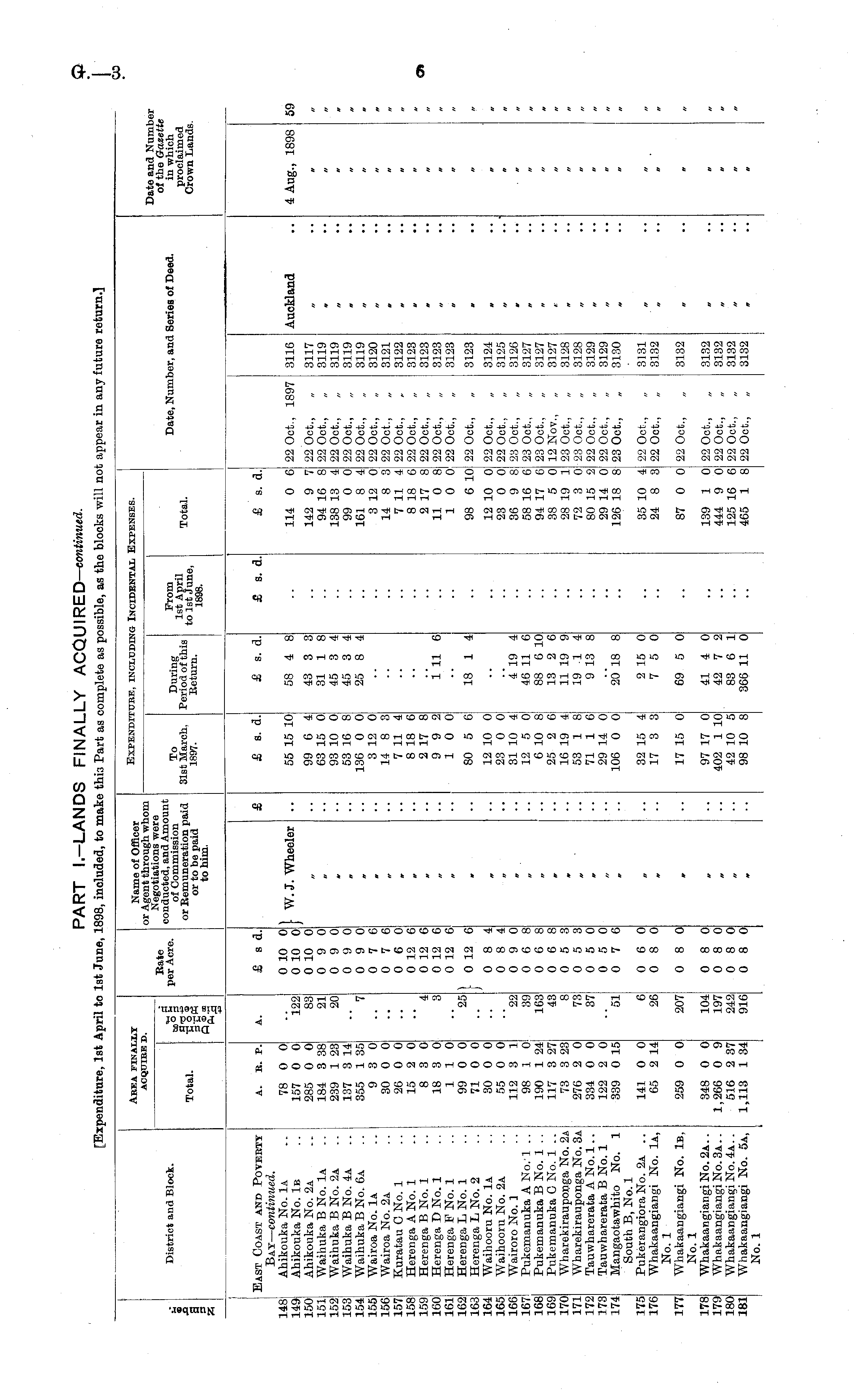 PART I.-LANDS FINALLY ACQUIRED-continued. [Expenditure, 1st April to 1st June, 1898, included, to make this Part as complete as possible, as the blocks will not appear in any future return.]