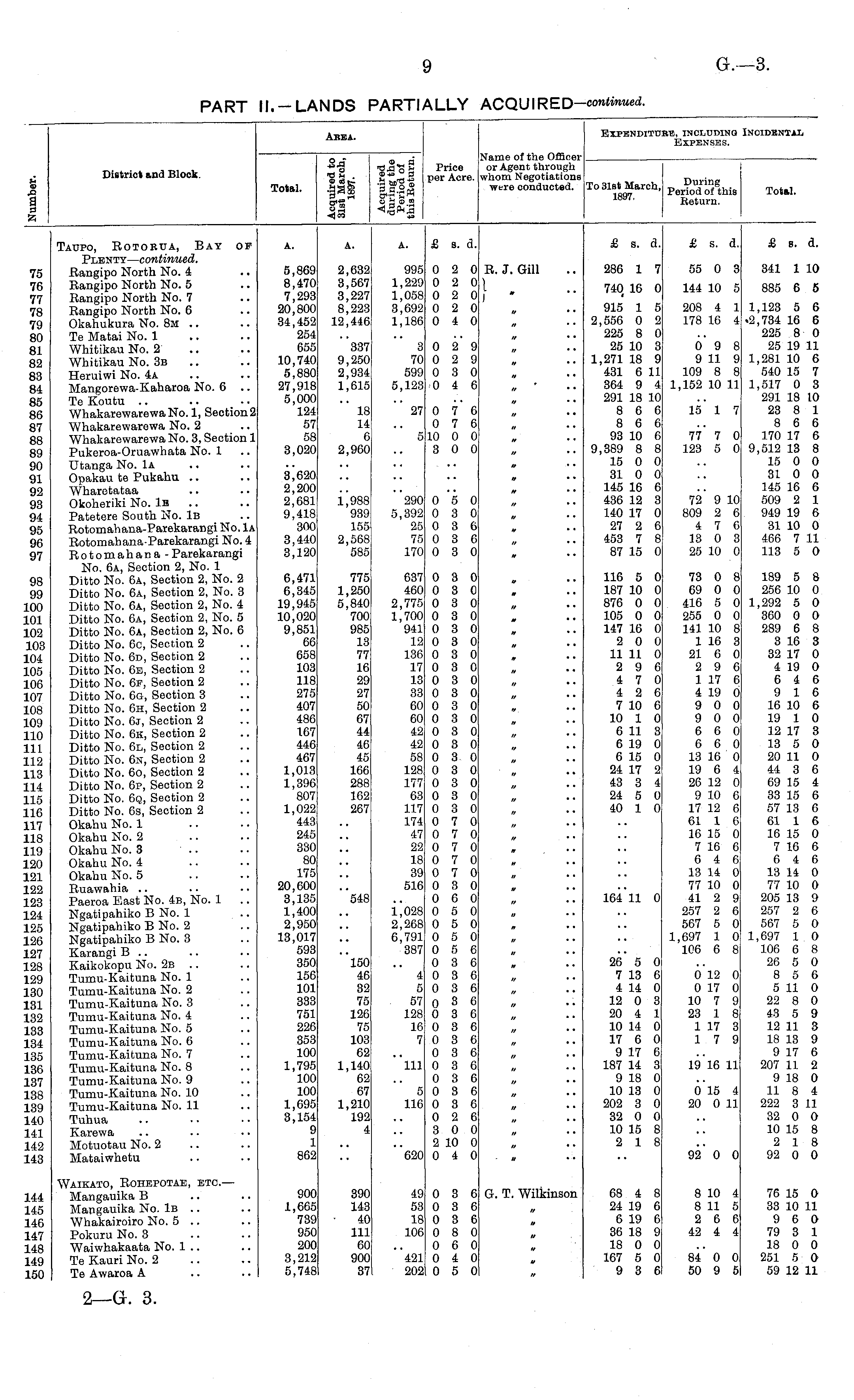 1 S3 District and Block. Abe a. °% «5"S § Price T ota, Ili fill - ACre - Abe a. Name of the Officer or Agent through whom Negotiations were conducted. expenditure, including incidental Expenses. To 31st March, 1897, During Period of this Eeturn. Total. Taupo, Botosui, Bay of Plenty— continued. Rangipo North No. 4 Bangipo North No. 5 Rangipo North No. 7 Rangipo North No. 6 Okahukura No. 8m .. Te Matai No. 1 Whitikau No. 2 Whitikau No. 3b Heruiwi No. 4a Mangorewa-Kaharoa No. 6 Te Koutu .. Whakarewarewa No. 1, Section 2 Whakarewarewa No. 2 Whakarewarewa No. 3, Section 1 Pukeroa-Oruawhata No. 1 Utanga No. Iα Opakau te Pukahu Wharetataa Okoheriki No. Iβ Patetere South No. Iβ Rotomahana-Parekarangi No. Iα Rotomahana-Parekarangi No. 4 Rotomahana -Parekarangi No. 6a, Section 2, No. 1 Ditto No. 6a, Section 2, No. 2 Ditto No. 6a, Section 2, No. 3 Ditto No. 6a, Section 2, No. 4 Ditto No. 6a, Section 2, No. 5 Ditto No. 6a, Section 2, No. 6 Ditto No. 6c, Secrion 2 Ditto No. 6d, Section 2 Ditto No. 6e, Section 2 Ditto No. 6f, Section 2 Ditto No. 6q, Section 3 Ditto No. 6h, Section 2 Ditto No. 6j, Section 2 Ditto No. 6k, Section 2 Ditto No. 6l, Section 2 Ditto No. 6n, Section 2 Ditto No. 60, Section 2 Ditto No. 6p, Section 2 Ditto No. 6q, Section 2 Ditto No. 6s, Section 2 Okahu No. 1 Okahu No. 2 Okahu No. 3 Okahu No. 4 Okahu No. 5 Ruawahia Paeroa East No. 4b, No. 1 Ngatipahiko B No. 1 Ngatipahiko B No. 2 Ngatipahiko B No. 3 Karangi B .. Kaikokopu No. 2b .. Tumu-Kaituna No. 1 Tumu-Kaituna No. 2 Tumu-Kaituna No. 3 Tumu-Kaituna No. 4 Tumu-Kaituna No. 5 Tumu-Kaituna No. 6 Tumu-Kaituna No. 7 Tumu-Kaituna No. 8 Tumu-Kaituna No. 9 Tumu-Kaituna No. 10 Tumu-Kaituna No. 11 Tuhua Karewa Motuotau No. 2 Mataiwhetu A. A. A. £ s. d. & s. d. £ s. d. £ s. d. 75 76 77 78 79 80 81 82 83 84 85 86 87 88 89 90 91 92 93 94 95 96 97 5,869 8,470 7,293 20,800 34,452 254 655 10,740 5,880 27,918 5,000 124 57 58 3,020 2,632 3,567 3,227 8,223 12,446 995 1,229 1,058 3,692 1,186 0 2 0 0 2 0 0 2 0 0 2 0 0 4 0 R. J. Gill ! ■ •■ 286 1 7 740 16 0 915 1 5 2,556 0 2 225 8 0 25 10 3 1,271 18 9 431 6 11 364 9 4 291 18 10 8 6 6 8 6 6 93 10 6 9,389 8 8 15 0 0 31 0 0 145 16 6 436 12 3 140 17 0 27 2 6 453 7 8 87 15 0 55 0 3 144 10 5 341 1 10 885 6 5 337 9,250 2,934 1,615 18 14 G 2,960 70 599 5,123 27 K 0 2 9 0 2 9 0 3 0 0 4 6 0 7 6 0 7 6 10 0 0 3 0 0 208 4 1 178 16 4 0 9 8 9 11 9 109 8 8 1,152 10 11 15 1 7 77 7 0 123 5 0 1,123 5 6 ■2,734 16 6 225 8 0 25 19 11 1,281 10 6 540 15 7 1,517 0 3 291 18 10 23 8 1 8 6 6 170 17 6 9,512 13 8 15 0 0 31 0 0 145 16 6 509 2 1 949 19 6 31 10 0 466 7 11 113 5 0 3,620 2,200 2,681 9,418 300 3,440 3,120 1,988 939 155 2,568 585 290 5,392 25 170 0 5 0 0 3 0 0 3 6 0 3 6 0 3 0 72 9 10 809 2 6 4 7 6 13 0 3 25 10 0 98 99 100 101 102 103 104 105 106 107 108 109 110 111 112 113 114 115 116 117 118 119 120 121 122 123 124 125 126 127 128 129 130 131 132 133 134 135 136 137 138 139 140 141 142 143 6,471 6,345 19,945 10,020 9,851 66 658 103 118 275 407 486 167 446 467 1,013 1,396 807 1,022 443 245 330 80 175 20,600 3,135 1,400 2,950 13,017 593 350 156 101 333 751 226 353 100 1,795 100 100 1,695 3,154 9 1 862 775 1,250 5,840 700 985 13 77 16 29 27 50 67 44 46 45 166 288 162 267 637 460 2,775 1,700 941 12 136 17 13 33 60 60 42 42 58 128 177 63 117 174 47 22 18 39 516 0 3 0 0 3 0 0 3 0 0 3 0 0 3 0 0 3 0 0 3 0 0 3 0 0 3 0 0 3 0 0 3 0 0 3 0 0 3 0 0 3 0 0 3 0 0 3 0 0 3 0 0 3 0 0 3 0 0 7 0 0 7 0 0 7 0 0 7 0 0 7 0 0 3 0 0 6 0 0 5 0 0 5 0 0 5 0 0 5 6 0 3 6 0 3 6 0 3 6 0 3 6 0 3 6 0 3 6 0 3 6 0 3 6 0 3 6 0 3 6 0 3 6 0 3 6 0 2 6 3 0 0 2 10 0 0 4 0 it • • // • • 116 5 0 187 10 0 876 0 0 105 0 0 147 16 0 2 0 0 11 11 0 2 9 6 4 7 0 4 2 6 7 10 6 10 1 0 6 11 3 6 19 0 6 15 0 24 17 2 43 3 4 24 5 0 40 1 0 73 0 8 69 0 0 416 5 0 255 0 0 141 10 8 1 16 3 21 6 0 2 9 6 1 17 6 4 19 0 9 0 0 9 0 0 6 6 0 6 6 0 13 16 0 19 6 4 26 12 0 9 10 6 17 12 6 61 1 6 16 15 0 7 16 6 6 4 6 13 14 0 77 10 0 41 2 9 257 2 6 567 5 0 1,697 1 0 106 6 8 189 5 8 256 10 0 1,292 5 0 360 0 0 289 6 8 3 16 3 32 17 0 4 19 0 6 4 6 9 16 16 10 6 19 1 0 12 17 3 13 5 0 20 11 O 44 3 6 69 15 4 33 15 6 57 13 6 61 1 6 16 15 0 7 16 6 6 4 6 13 14 0 77 10 0 205 13 9 257 2 6 567 5 0 1,697 1 0 106 6 8 26 5 0 8 5 6 5 11 0 22 8 0 43 5 9 12 11 3 18 13 9 9 17 6 207 11 2 9 18 0 11 8 4 222 3 11 32 0 0 10 15 8 2 18 92 0 0 "548 tt ■ • 164 11 0 1,028 2,268 6,791 387 150 46 32 75 126 75 103 62 1,140 62 67 1,210 192 4 4 5 57 128 16 7 it • ■ 26 5 0 7 13 6 4 14 0 12 0 3 20 4 1 10 14 0 17 6 0 9 17 6 187 14 3 9 18 0 10 13 0 202 3 0 32 0 0 10 15 8 2 18 0 12 0 0 17 0 10 7 9 23 1 8 1 17 3 17 9 111 19 16 11 5 116 6 15 4 20 0 11 '"620 92 0 0 144 145 146 147 148 149 150 Waikato, Rohepotae, etc. — Mangauika B Mangauika No. Iβ .. Whakairoiro No. 5 .. Pokuru No. 3 Waiwhakaata No. 1 .. Te Kauri No. 2 Te Awaroa A 900 1,665 739 950 200 3,212 5,748 390 143 40 111 60 900 37 49 53 18 106 0 3 6 0 3 6 0 3 6 0 8 0 0 6 0 0 4 0 0 5 0 G. T. Wilkinson 68 4 8 24 19 6 6 19 6 36 18 9 18 0 0 167 5 0 9 3 6 8 10 4 8 11 5 2 6 6 42 4 4 76 15 0 33 10 11 9 6 0 79 3 1 18 0 0 251 5 O 59 12 11 "421 202 84 0 0 50 9 5