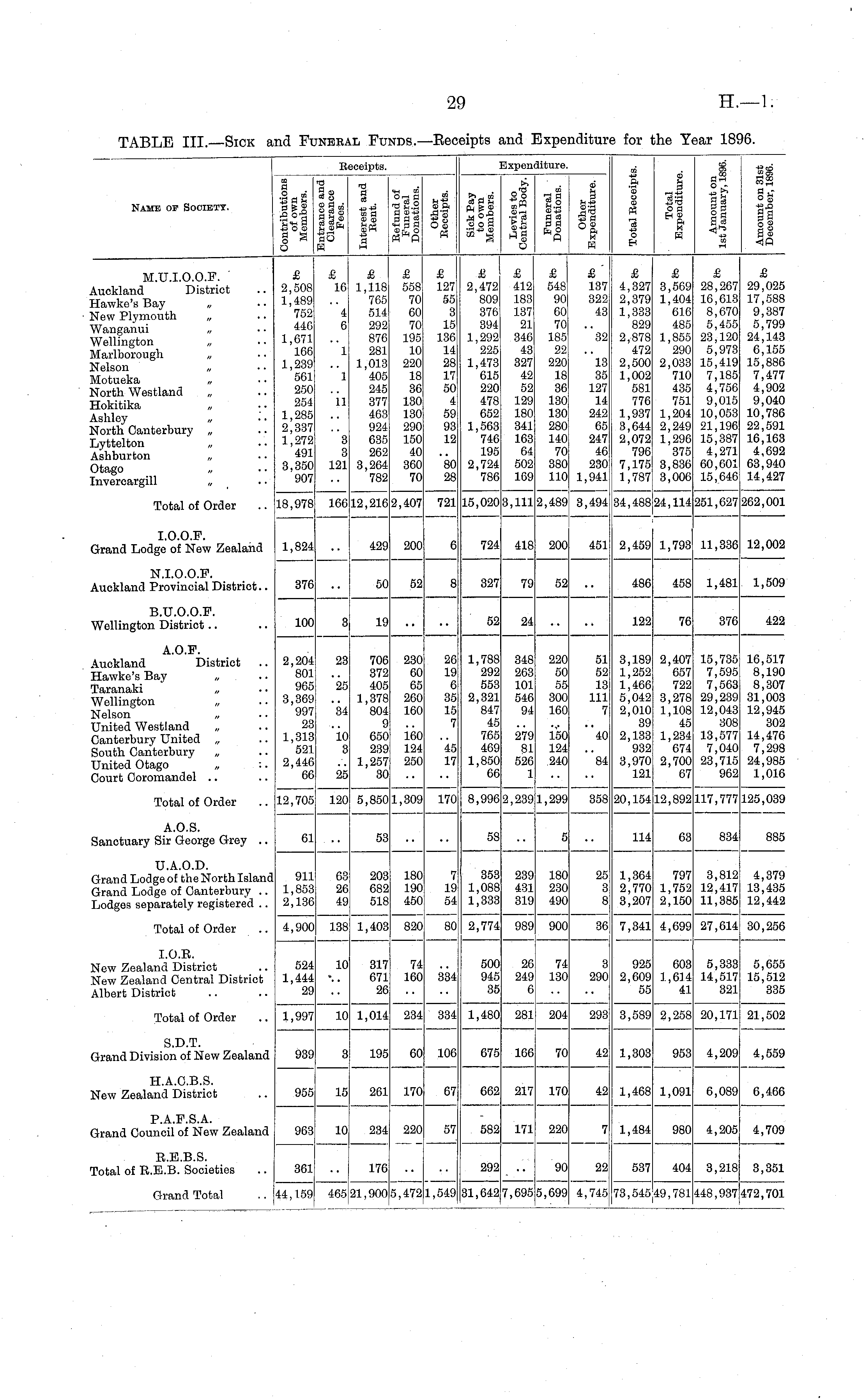 TABLE III.—Sick and Funeral Funds. —Receipts and Expenditure for the Year 1896.