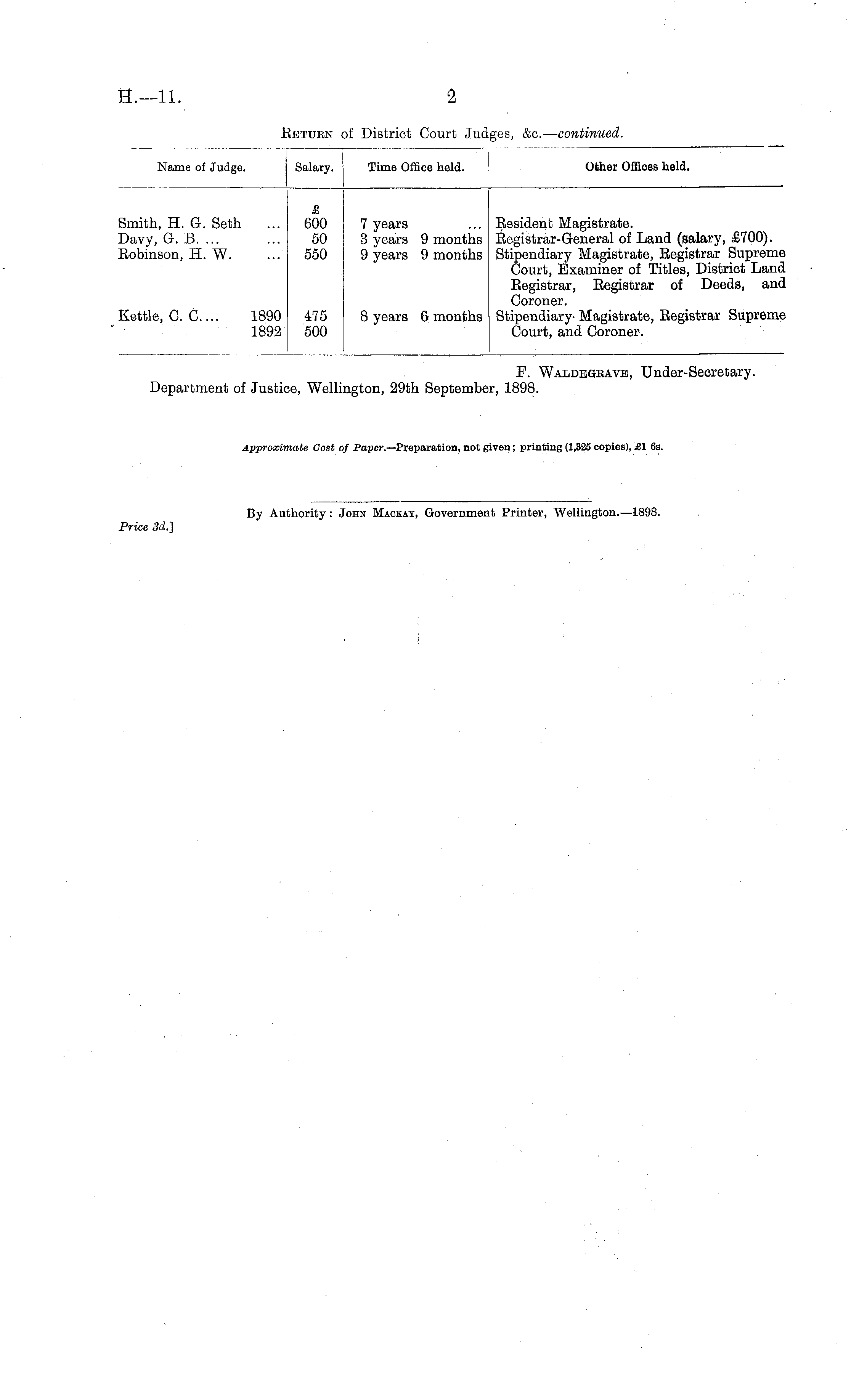 F. Waldegbave, Under-Secretary. Department of Justice, Wellington, 29th September, 1898. Approximate Cost of Paper.—Preparation, not given; printing (1,325 copies), £1 6s.