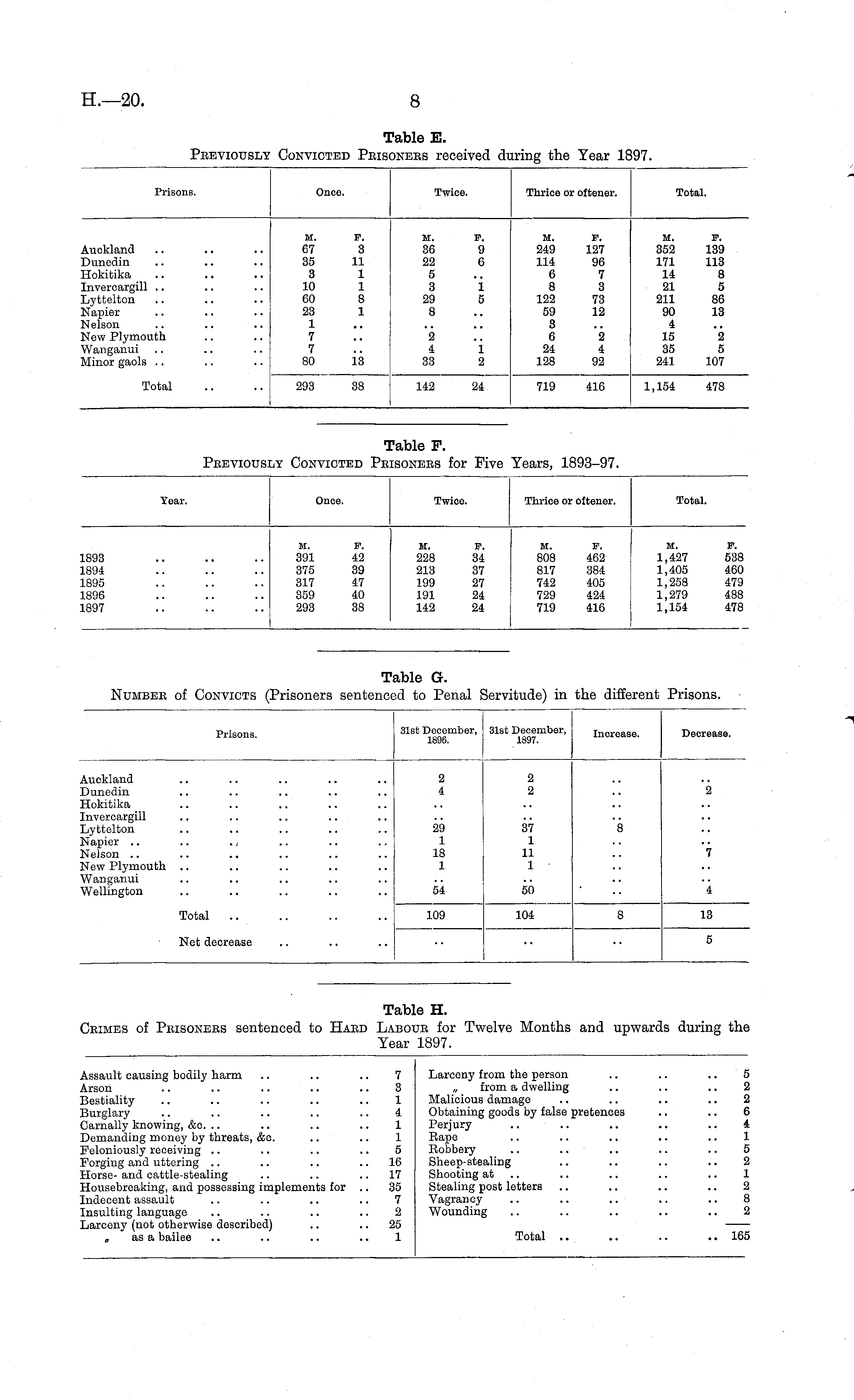 Table H. Crimes of Prisoners sentenced to Hard Labour for Twelve Months and upwards during the Year 1897.