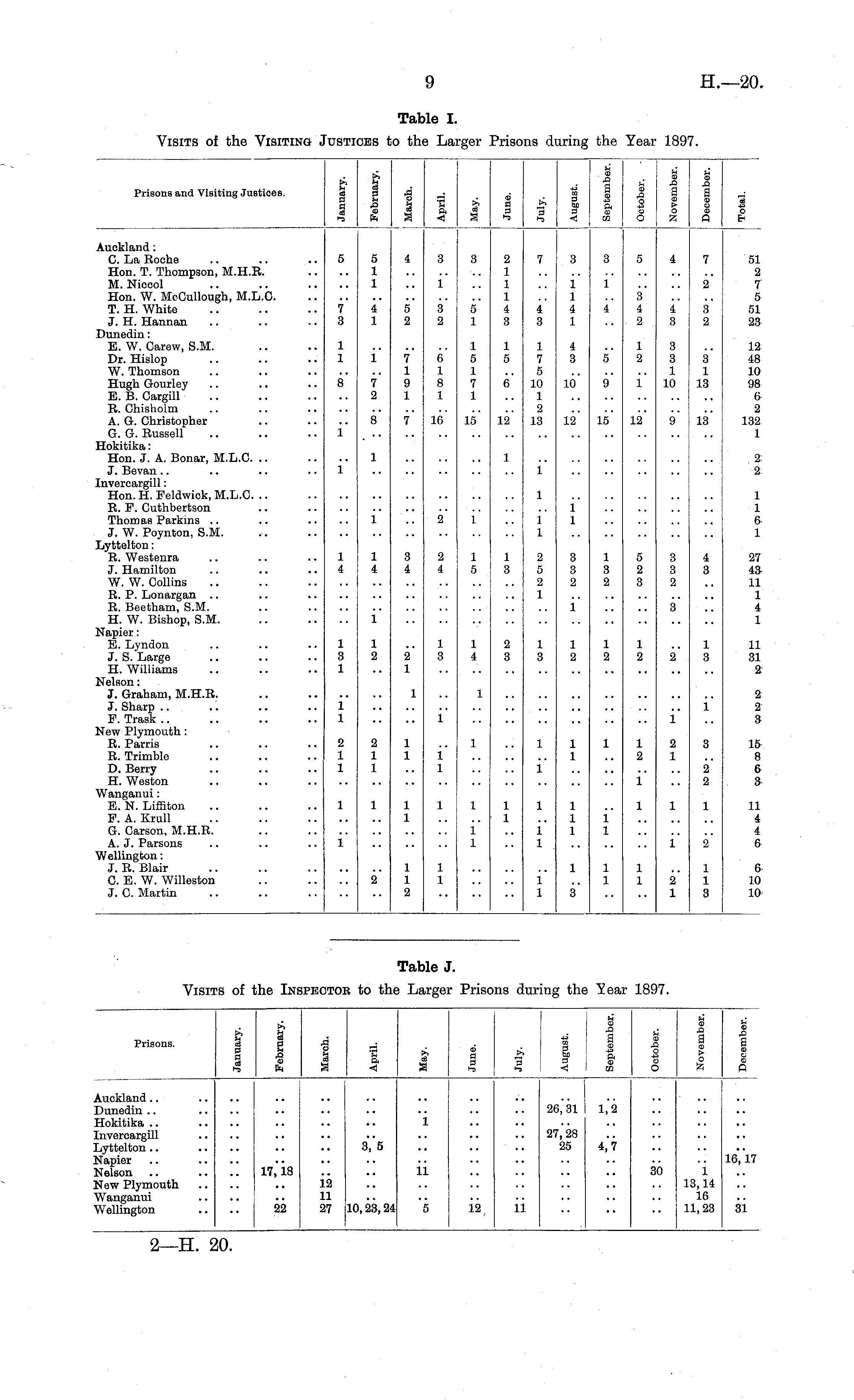 Table J. Visits of the Inspector to the Larger Prisons during the Year 1897.