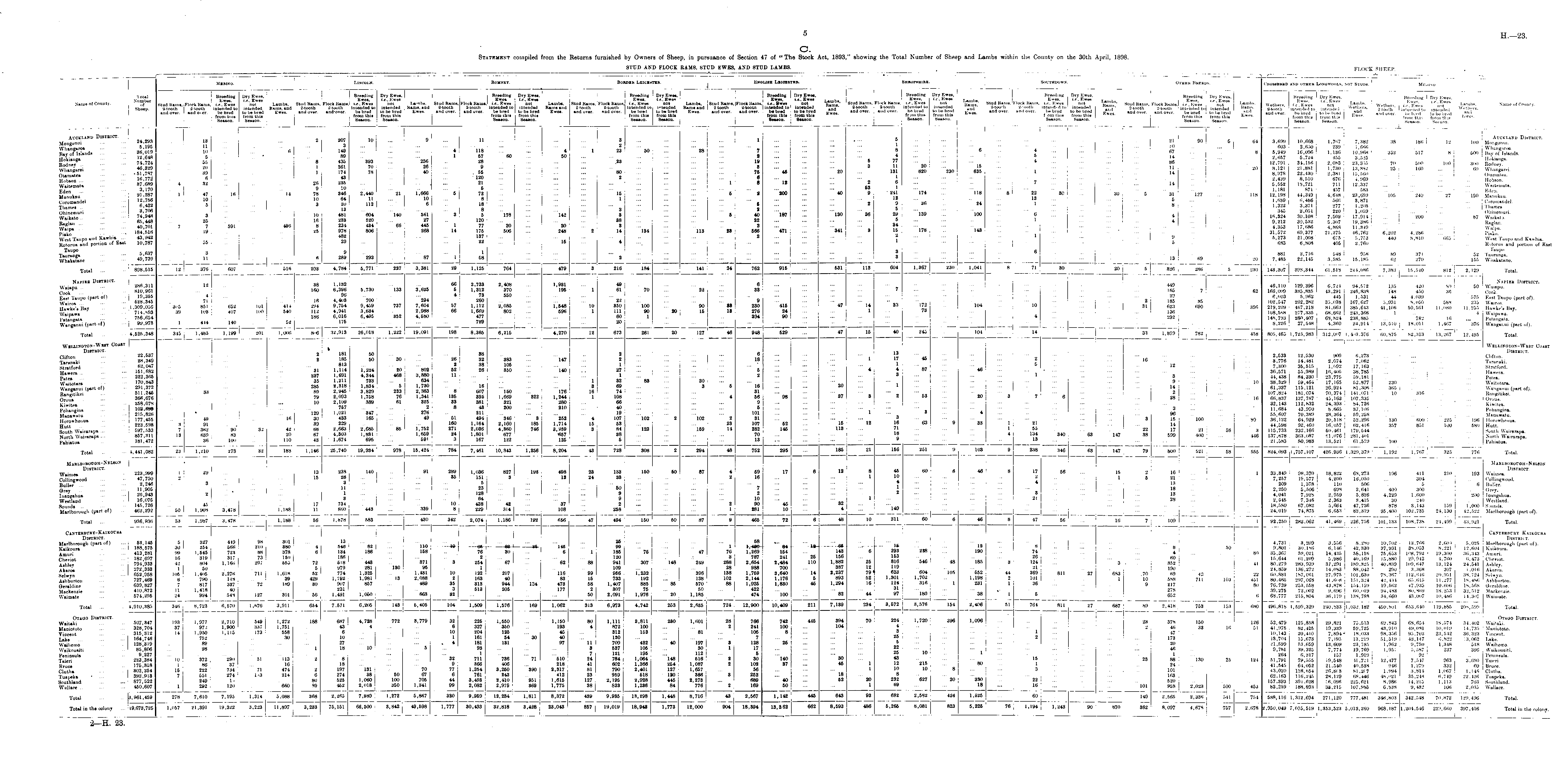 o. Statement compiled from the Returns furnished by Owners of Sheep, in pursuance of Section 47 of "The Stock Act, 1893," showing the Total Number of Sheep and Lambs within the County on the 30th April, 1898. STUD AND FLOCK RAMS, STUD EWES, AND STUD LAMBS. FLOCK SHEEP.