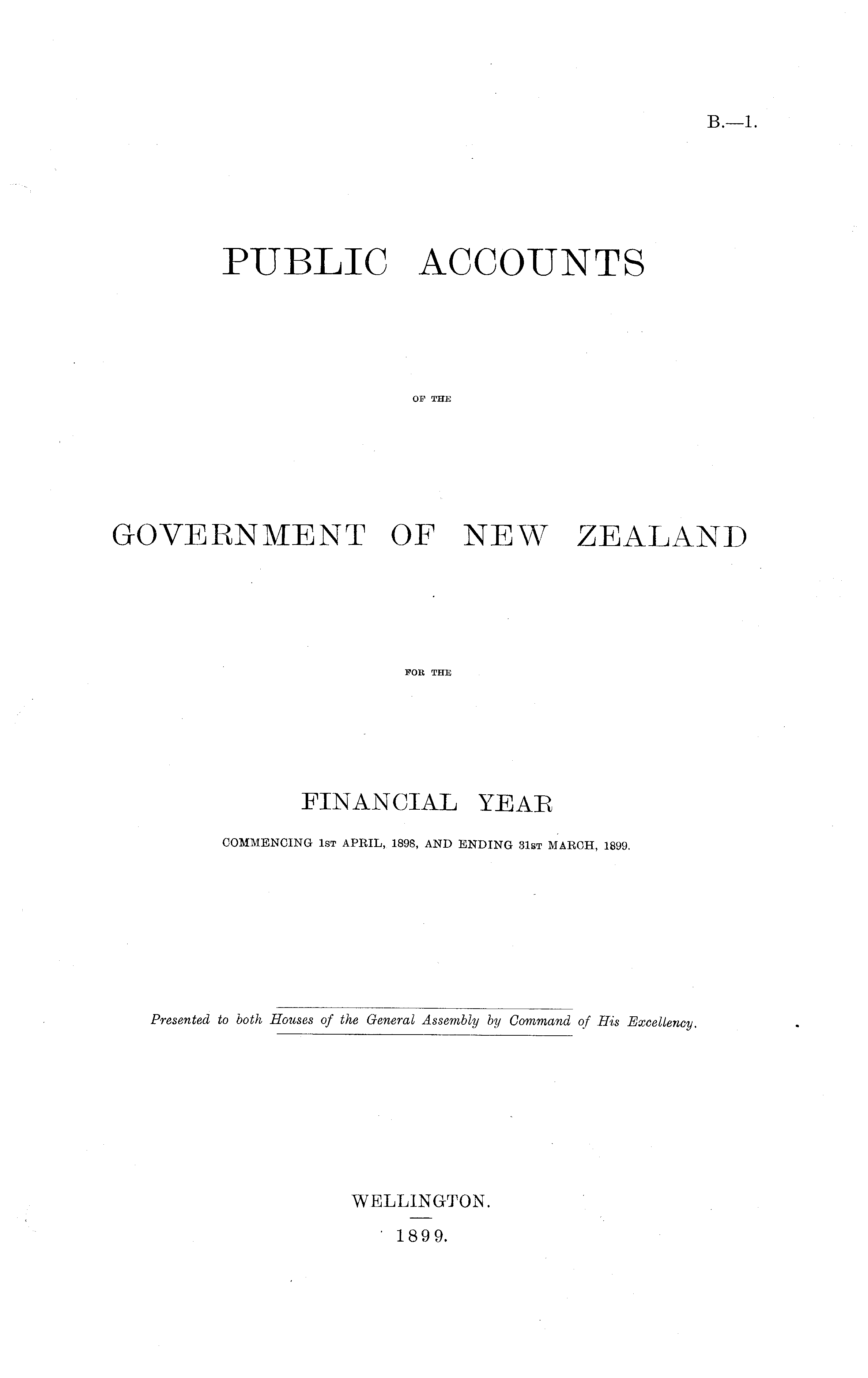 PUBLIC ACCOUNTS OF THE GOVERNMENT OF NEW ZEALAND FOR THE FINANCIAL YEAR COMMENCING 1st APRIL, 1898, AND ENDING 31st MARCH, 1899.