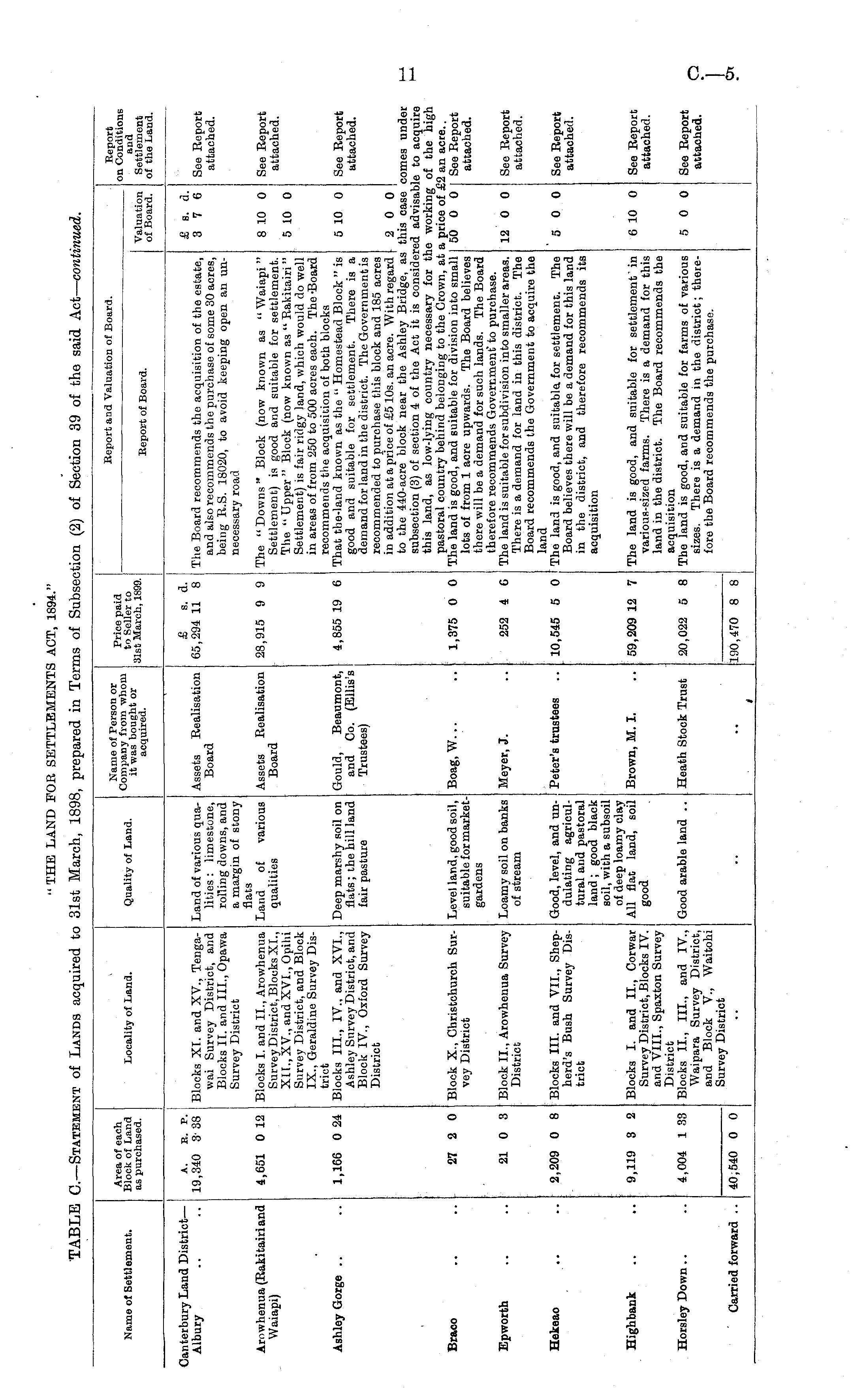 "THE LAND FOR SETTLEMENTS ACT, 1894." TABLE C.—Statement of Lands acquired to 31st March, 1898, prepared in Terms of Subsection (2) of Section 39 of the said Act— continued.