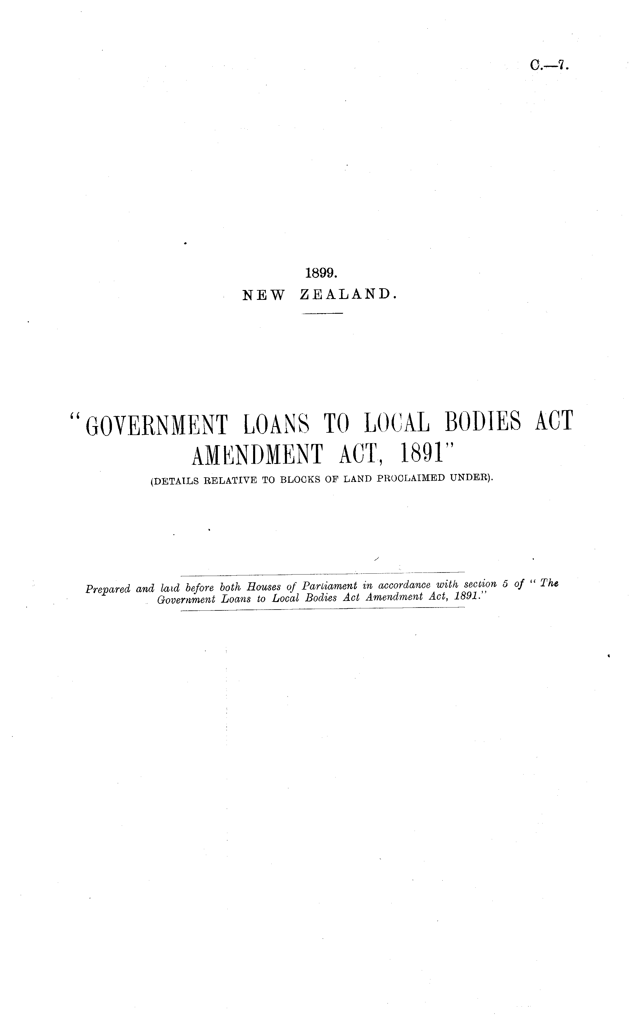 "GOVERNMENT LOANS TO LOCAL BODIES ACT AMENDMENT ACT, 1891" (DETAILS RELATIVE TO BLOCKS OF LAND PROCLAIMED UNDER).