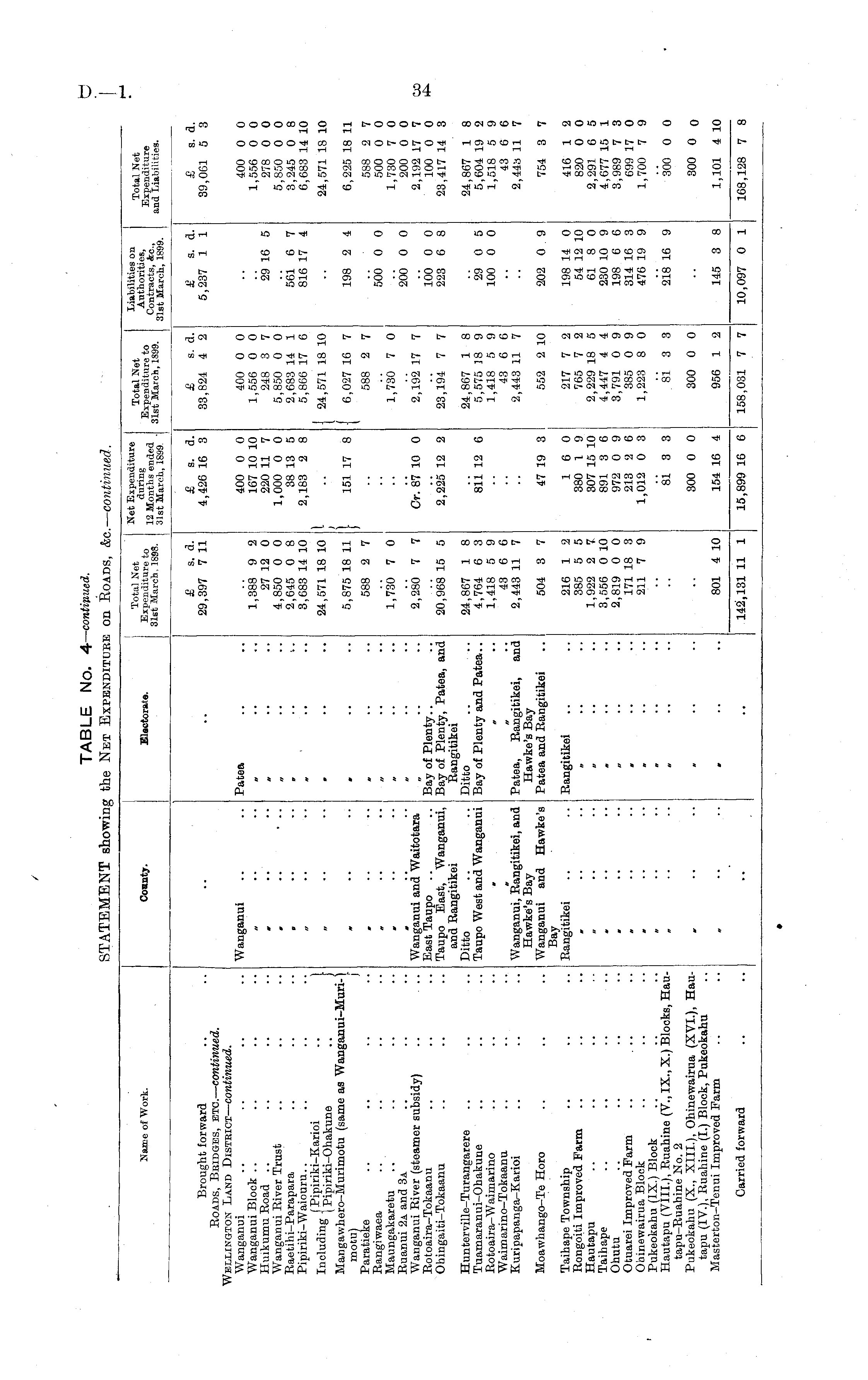 Name of Work. County. Electorate. Total Net Expenditure to 31st March. 1898. Net Expenditure during 12 Months ended 31st March, 1899. ' Total Net Expenditure to 31st March, 1899. Liabilities on , -vr 4. . j.1 -j.. lotal JNet Brought forward Roads, Bridges, etc.— continued. 'ellington Land Distbict — continued. Wanganui Wanganui Block Huikumu Road Wanganui Eiver Trust Raetihi-Parapara Pipiriki-Waiouru.. T , -,. (Pipiriki-Karioi .. 1 Including J p i £ iri fc i _ O hakune .. j Mangawhero-Murimotu (same as Wanganui-Muri-) Paratieke Rangiwaea Maungakaretu Ruanui 2a and 3a Wanganui River (steamer subsidy) .. ... Rotoaira-Tokaanu Obingaiti-Tokaanu £ s. d. 29,397 7 11 £ s. d. 4,426 16 3 £ s. d. 33,824 4 2 £ s. d. 5,237 1 1 £ s. d. 39,061 5 3 Wanganui Patea 1,388 9 2 27 12 0 4,850 0 0 2,645 0 8 3,683 14 10 400 0 0 167 10 10 220 11 7 1,000 0 0 38 13 5 2,183 2 8 400 0 0 1,556 0 0 248 3 7 5,850 0 0 2,683 14 1 5,866 17 6 400 0 0 1,556 0 0 278 0 0 5,850 0 0 3,245 0 8 6,683 14 10 * • • • • 29 16 5 u • • * * • 561 6 7 816 17 4 24,571 18 10 5,875 18 11 I I 151 17 8 j 24,571 18 10 I 6,027 16 7 198 2 4 24,571 18 10 6,225 18 11 588 2 7 588 2 7 500 0 0 588 2 7 500 0 0 1,730 7 0 200 0 0 2,192 17 7 100 0 0 23,417 14 3 m . . • . 1,730 7 0 1,730 7 0 200 0 0 Wanganui and Waitotara East Taupo Taupo East, Wanganui, and Rangitikei Ditto Taupo West and Wanganui Bay o£ Plenty.. Bay of Plenty, Patea, and Rangitikei Ditto Bay of Plenty and Patea.. 2,280 7 7 20,968 15 5 Or. 87 10 0 2,225 12 2 2,192 17 7 23,194 7 7 100 0 0 223 6 8 Hunterville-Turangarere Tuamaranui-Ohakune Rotoaira—Waimarino Waim arino-Tokaanu Kuripapanga-Karioi * 24,867 1 8 4,764 6 3 1,418 5 9 43 6 6 2,443 11 7 811 12 6 24,867 1 8 5,575 18 9 1,418 5 9 43 6 6 2,443 11 7 29 0 5 100 0 0 24,867 1 8 5,604 19 2 1,518 5 9 43 6 6 2,44b 11 7 Moawhango-Te Horo Wanganui, Rangitikei, and Hawke's Bay Wanganui and Hawke's Bay Rangitikei Patea, Rangitikei, and Hawke's Bay Patea and Rangitikei 504 3 7 47 19 3 552 2 10 202 0 9 754 3 7 Taihape Township Rongoiti Improved Farm Hautapu Taihape Ohutu Otuarei Improved Farm .. ... Obinewairua Block Pukeokahu (IX.) Block Hautapu (VIII.), Ruahine (V., IX., X.) Blocks, Hau-tapu-Ruahine No. 2 Pukeokahu (X., XIII.), Ohinewairua (XVI.), Hautapu (IV.), Ruahine (I.) Block, Pukeokahu Masterton-Tenui Improved Farm Rangitikei 216 1 2 385 5 5 1,922 2 7 3,556 0 10 2,819 0 0 171 18 3 211 7 9 16 0 380 1 9 307 15 10 891 3 6 972 0 9 213 2 6 1,012 0 3 217 7 2 765 7 2 2,229 18 5 4,447 4 4 3,791 0 9 385 0 9 1,223 8 0 198 14 0 54 12 10 61 8 0 230 10 9 198 6 6 314 16 3 476 19 9 416 1 2 820 0 0 2,291 6 5 4,677 15 1 3,989 7 3 699 17 0 1,700 7 9 If • • • • 81 3 3 81 3 3 218 16 9 300 0 0 300 0 0 300 0 0 300 0 0 801 4 10 154 16 4 956 1 2 145 3 8 1,101 4 10 Carried forward 142,131 11 1 15,899 16 6 158,031 7 7 10,097 0 1 168,128 7
