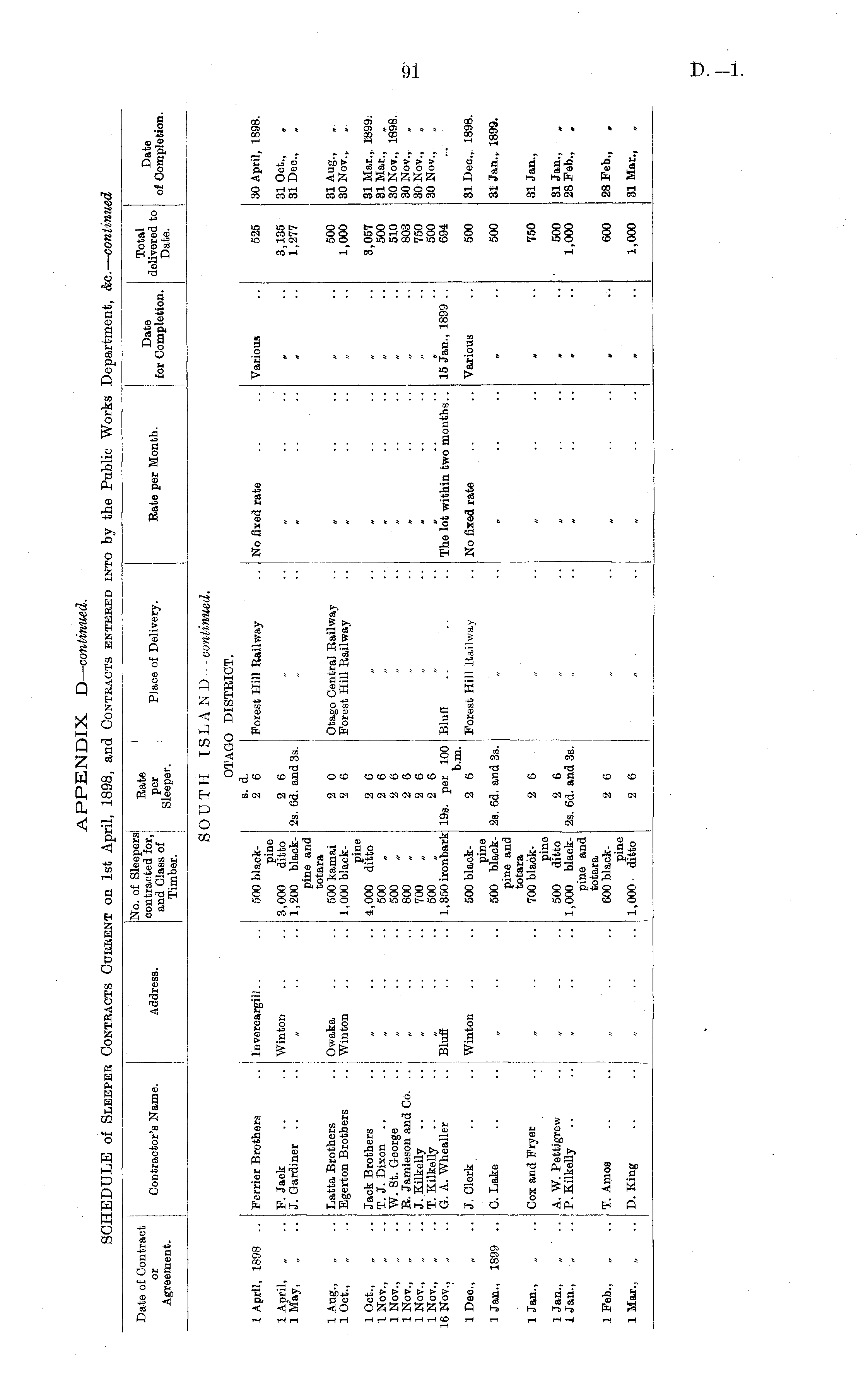 APPENDIX D— continued. SCHEDULE of Sleeper Contracts Current on 1st April, 1898, and Contracts entered into by the Public Works Department, &c.— continued