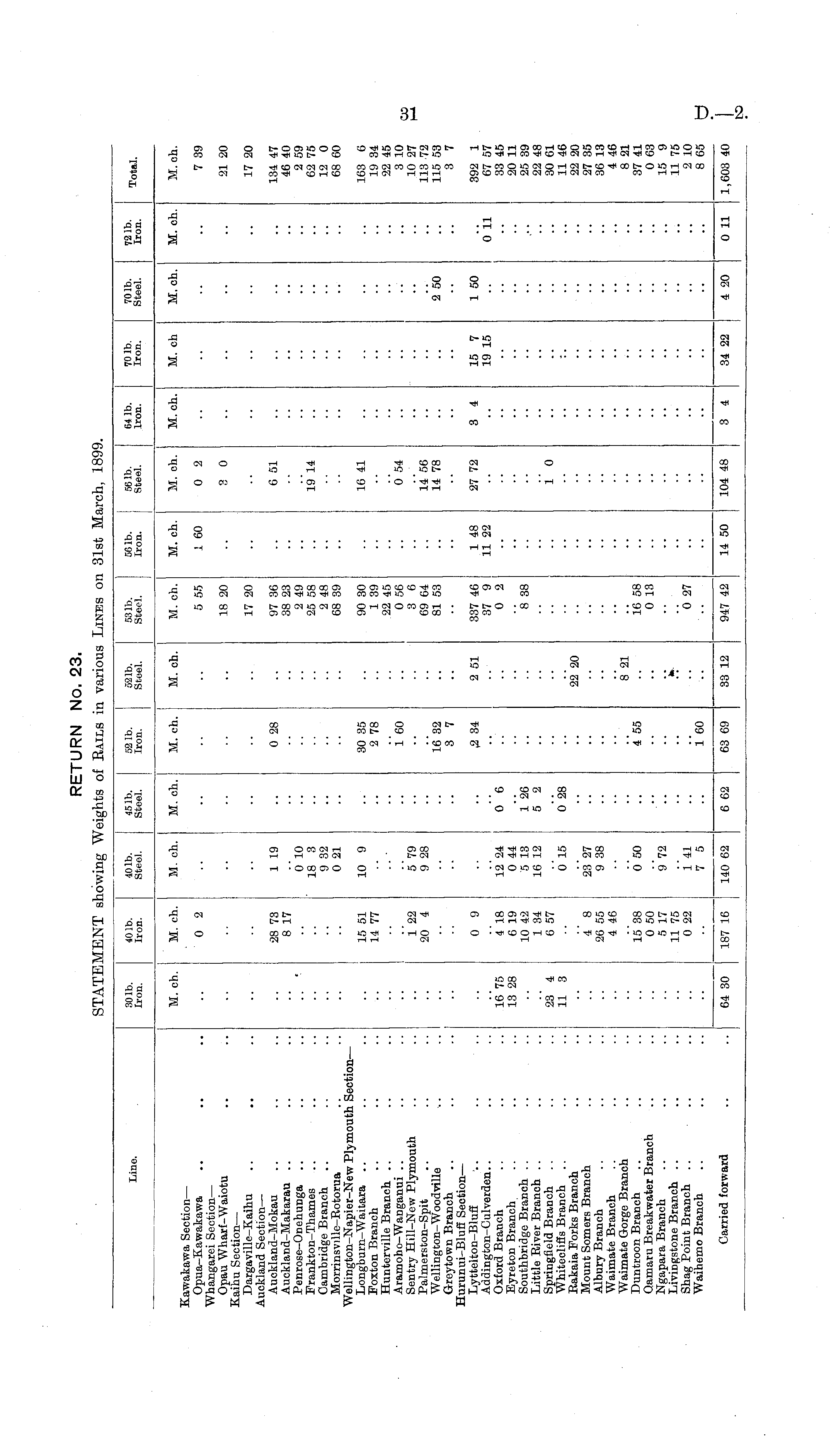 RETURN No. 23. STATEMENT showing Weights of Rails in various Lines on 31st March, 1899.