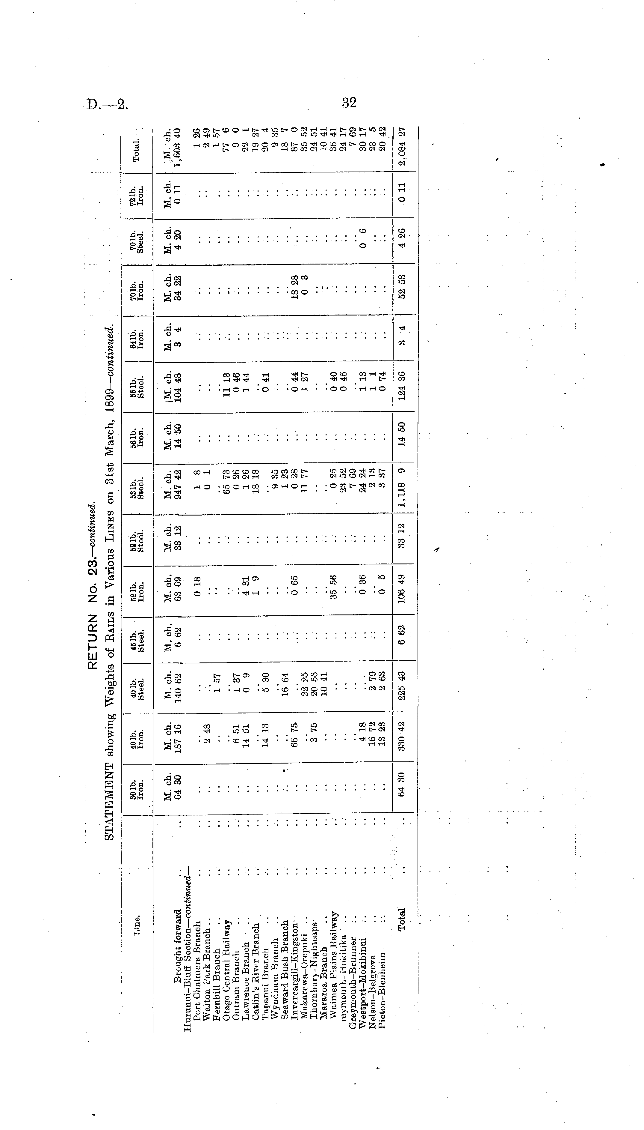 RETURN No. 23.—continued. STATEMENT showing Weights of Rails in Various Lines on 31st March, 1899— continued.