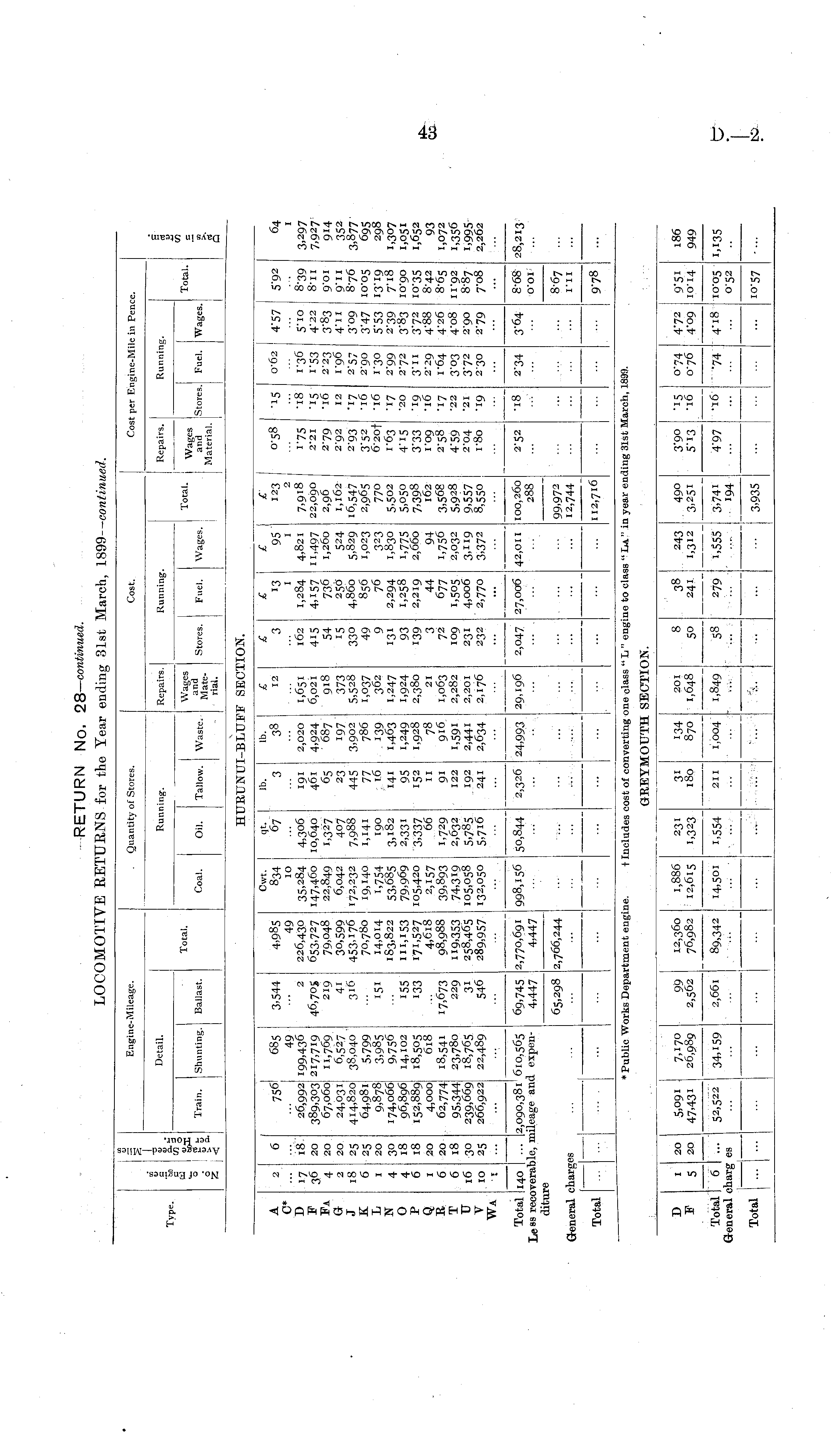 RETURN No. 28— continued. LOCOMOTIVE RETURNS for the Year ending 31st March, 1899— continued.