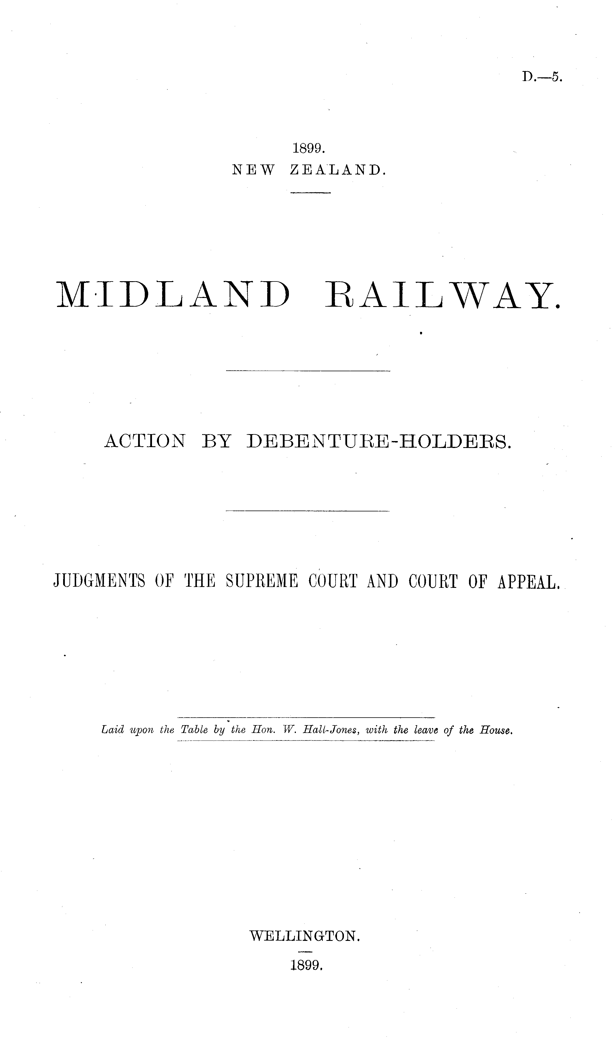 Laid upon the Table by the Hon. W. Hall-Jones, with the leave of the House. WELLINGTON. 1899.