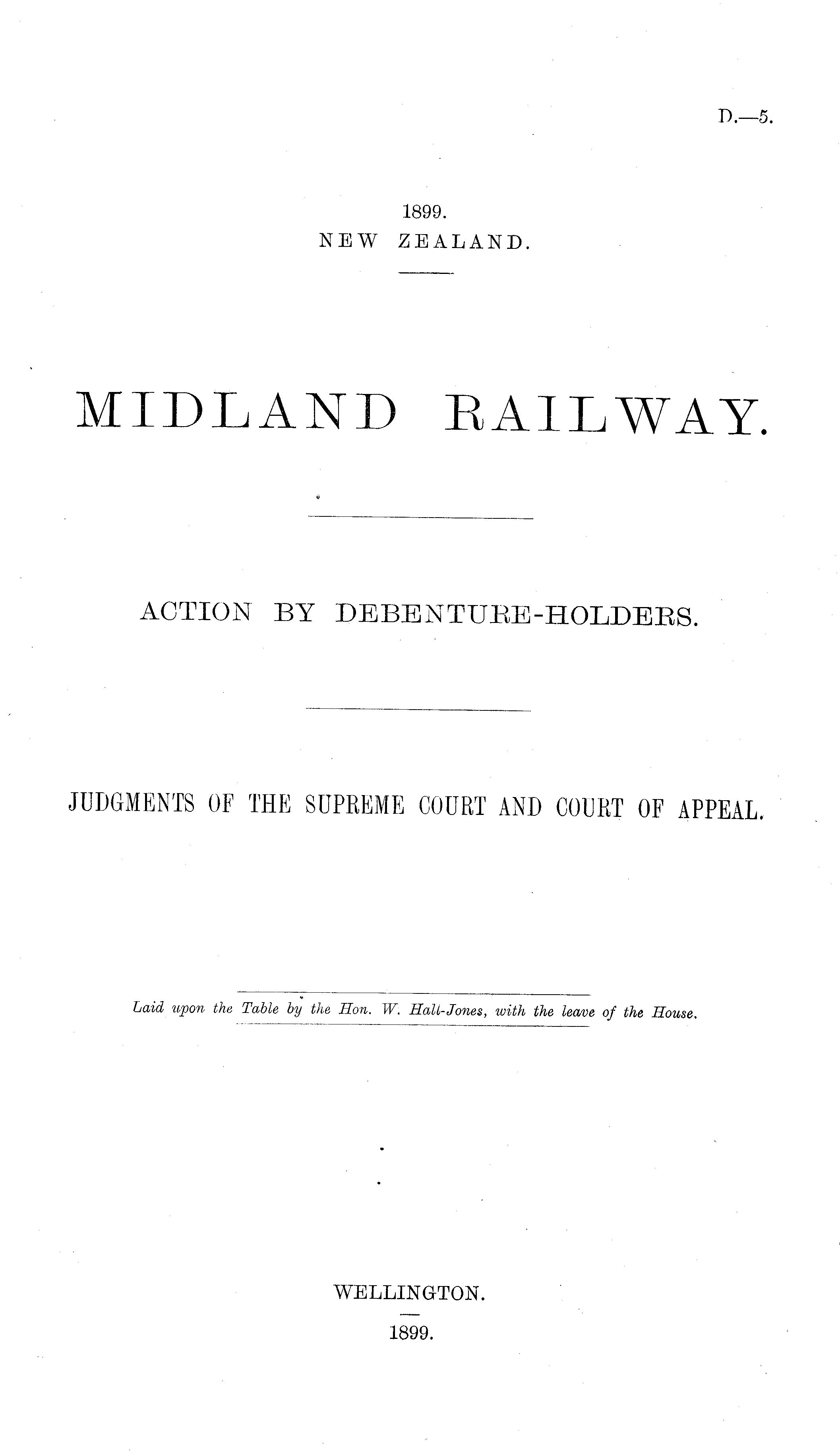 Laid upon the Table by the Hon. W. Hall-Jones, with the leave of the House. WELLINGTON. 1899.