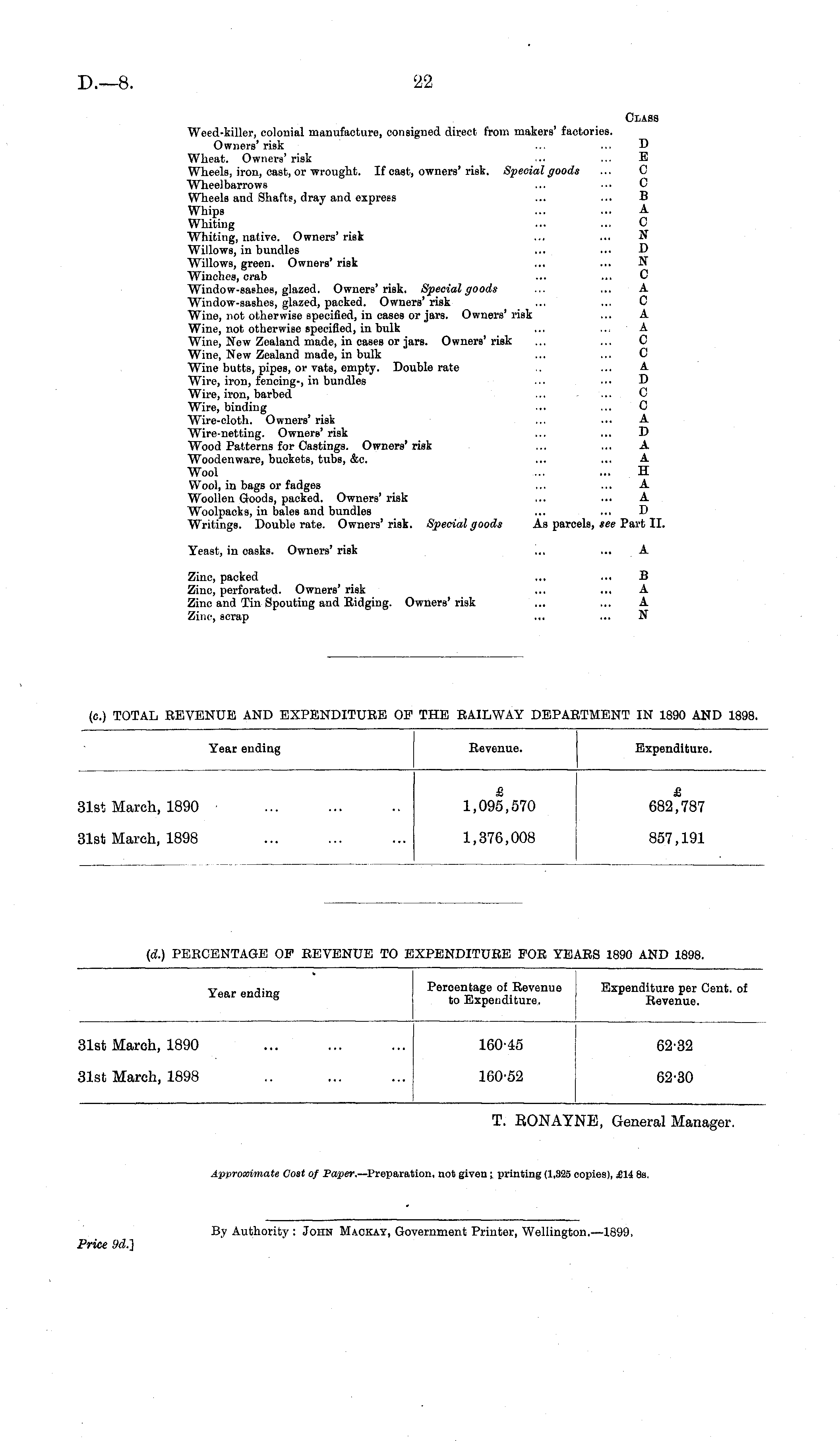 T. EONAYNB, General Manager. Approximate Cost of Paper.—Preparation, not given ;. printing (1,325 copies), £14 Bs.