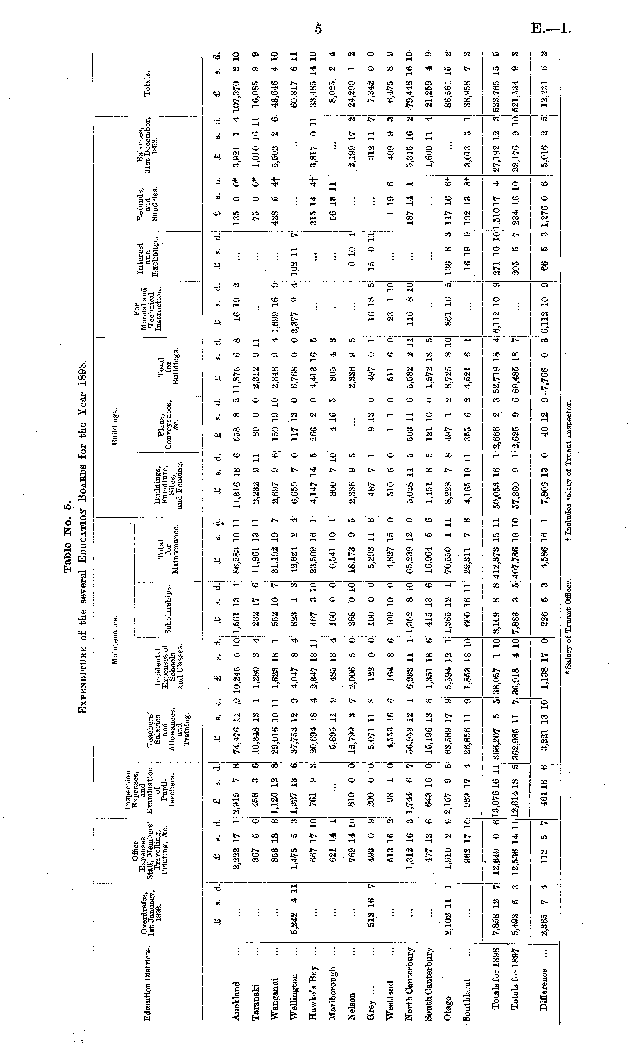 Table No. 5. Expenditure of the several Education Boards for the Year 1898.