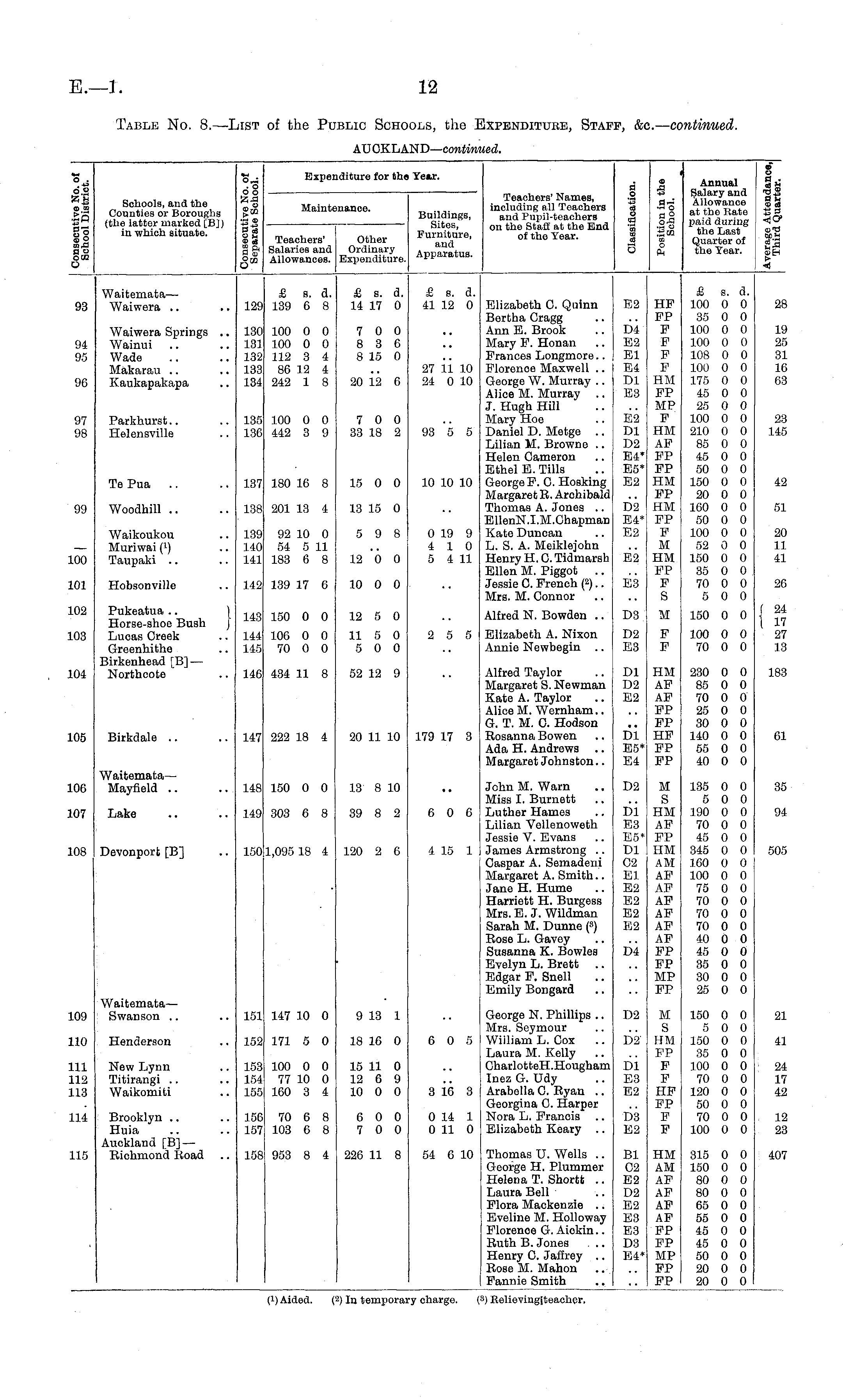 Table No. 8.—List of the Public Schools, the Expenditure, Staff, &c.— continued. AUCKLAND— continued.