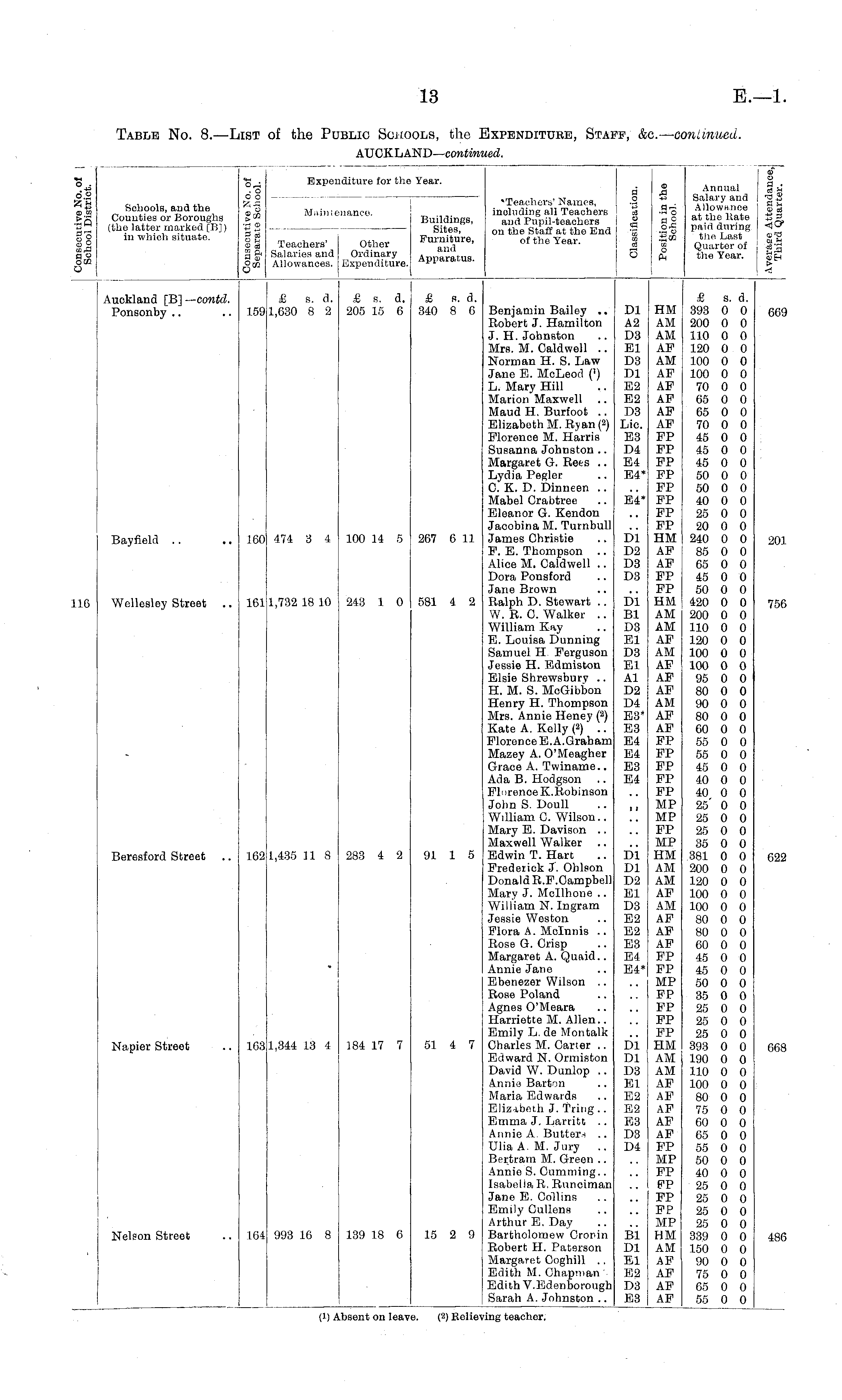 Table No. 8.—List of the Public Schools, the Expenditure, Staff, &c .— continued. AUCKLAND— continued.
