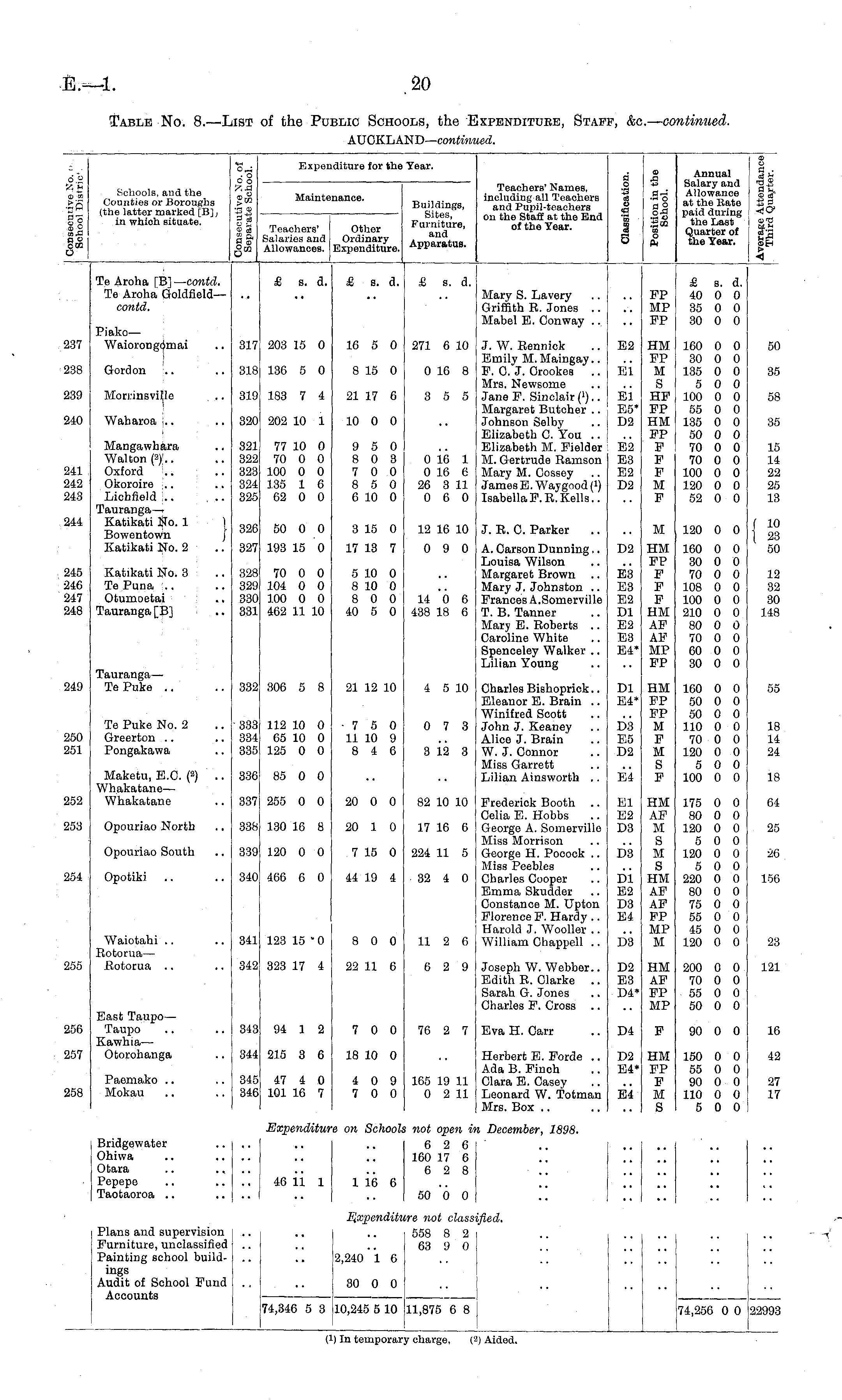 Table No. 8.—List of the Public Schools, the Expenditure, Staff, &c.— continued. AUCKLAND — continued.