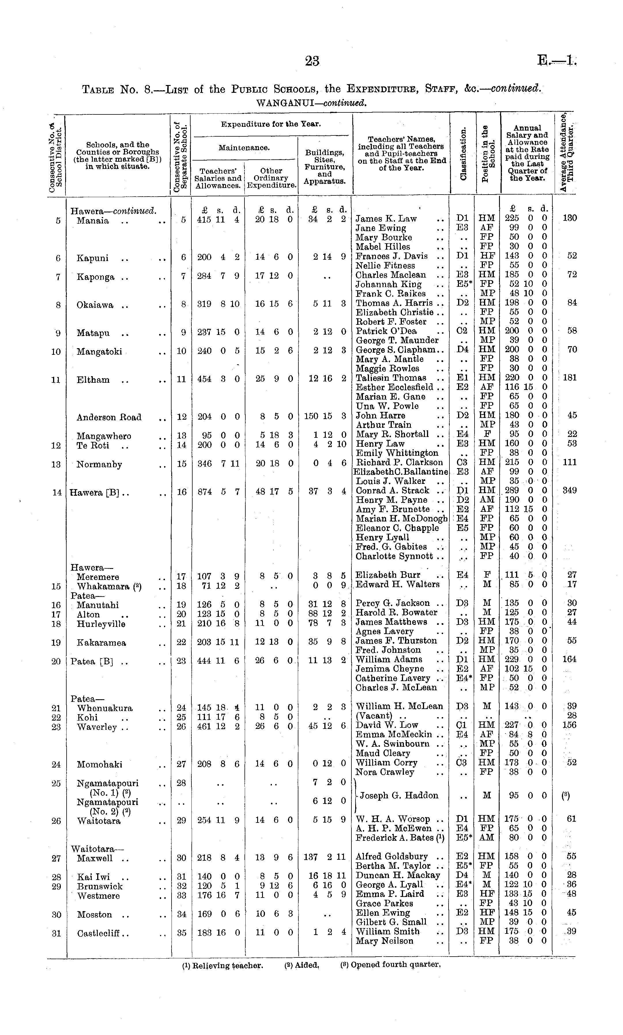 Table No. 8.—List of the Public Schools, the Expenditure, Staff, &c. — continued. WANGANUI— continued.