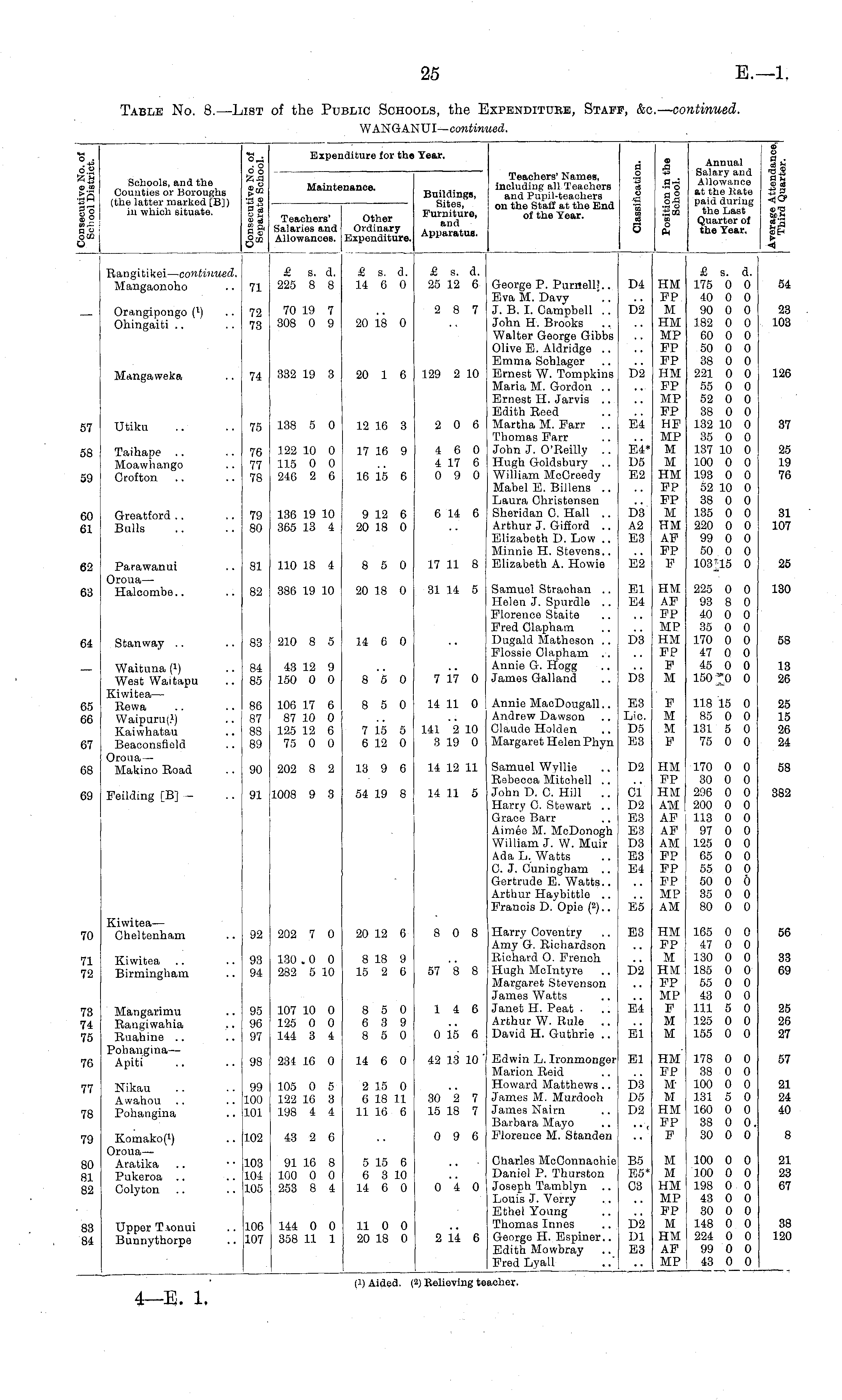Table No. 8.—List of the Public Schools, the Expenditure, Staff, &c. — continued. WANGANUI— continued.