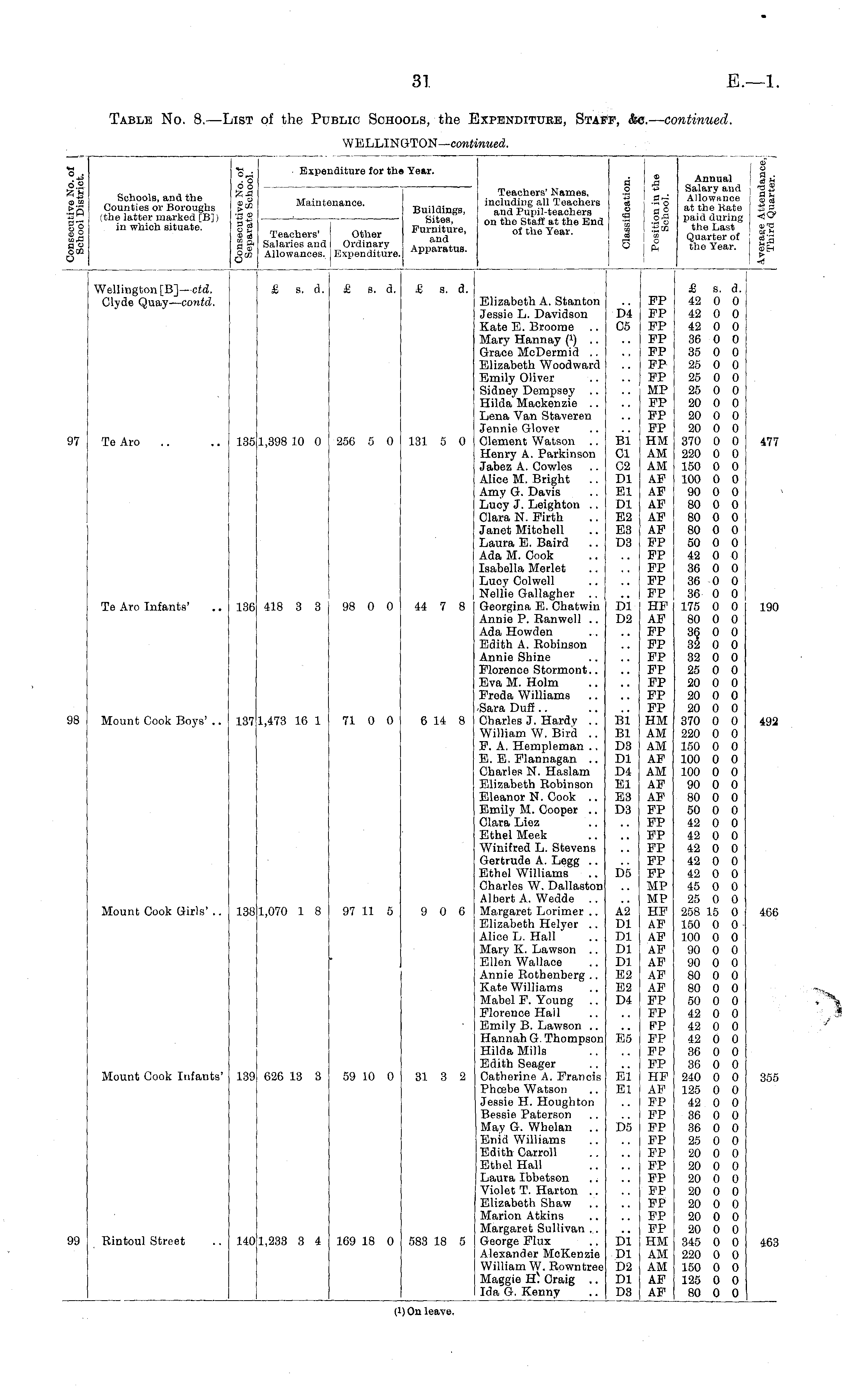 Table No. 8.—List of the Public Schools, the Expenditure, Staff, &c. — continued. WELLINGTON— continued.