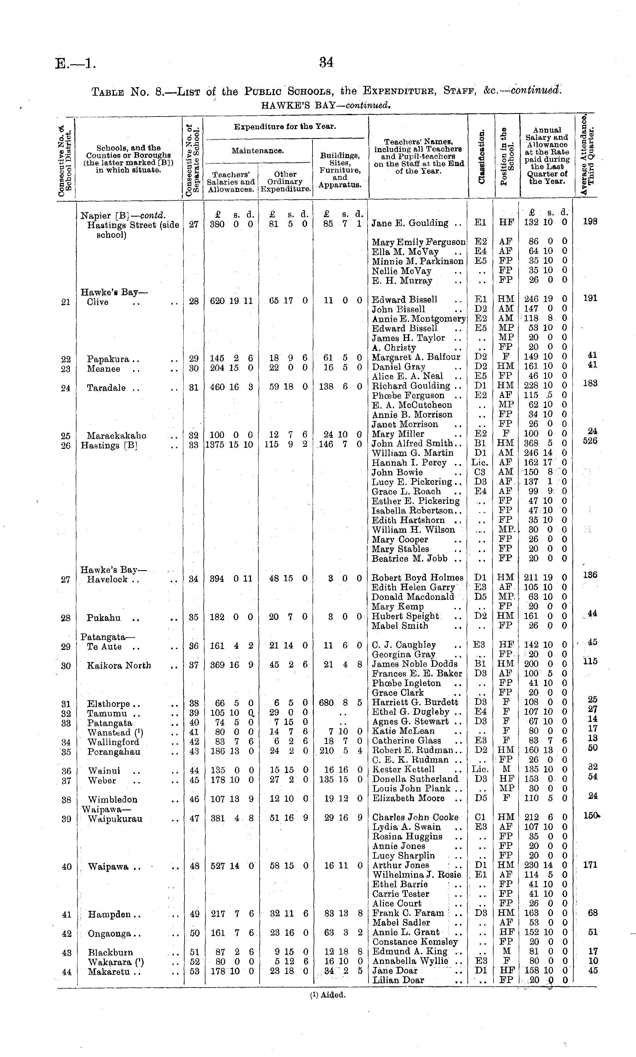 Table No. 8.—List of the Public Schools, the Expenditure, Staff, &c.-continued. HAWKE'S BAY— continued.