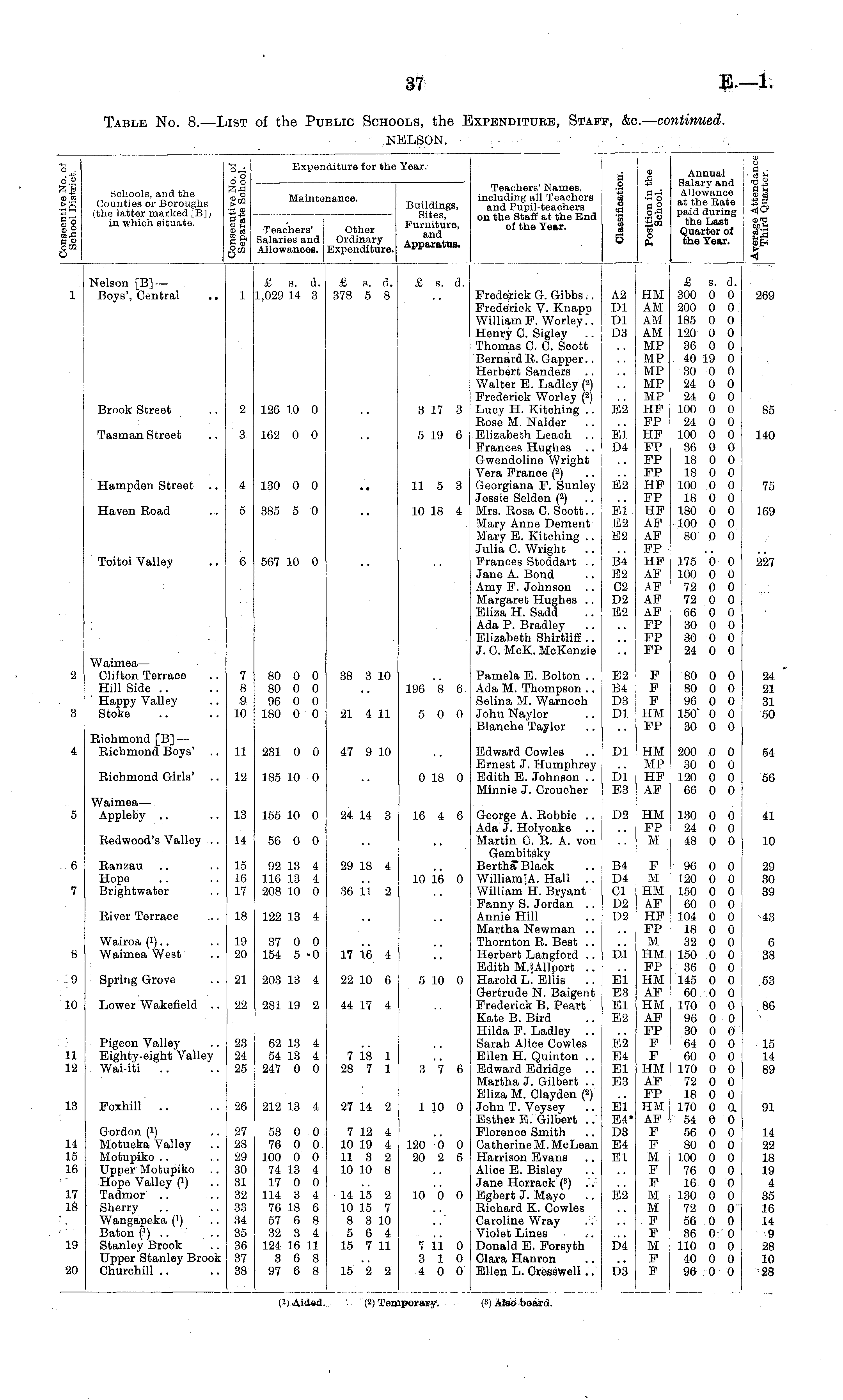 Table No. 8. —List of the Public Schools, the Expenditure, Staff, &c. — continued. NELSON.