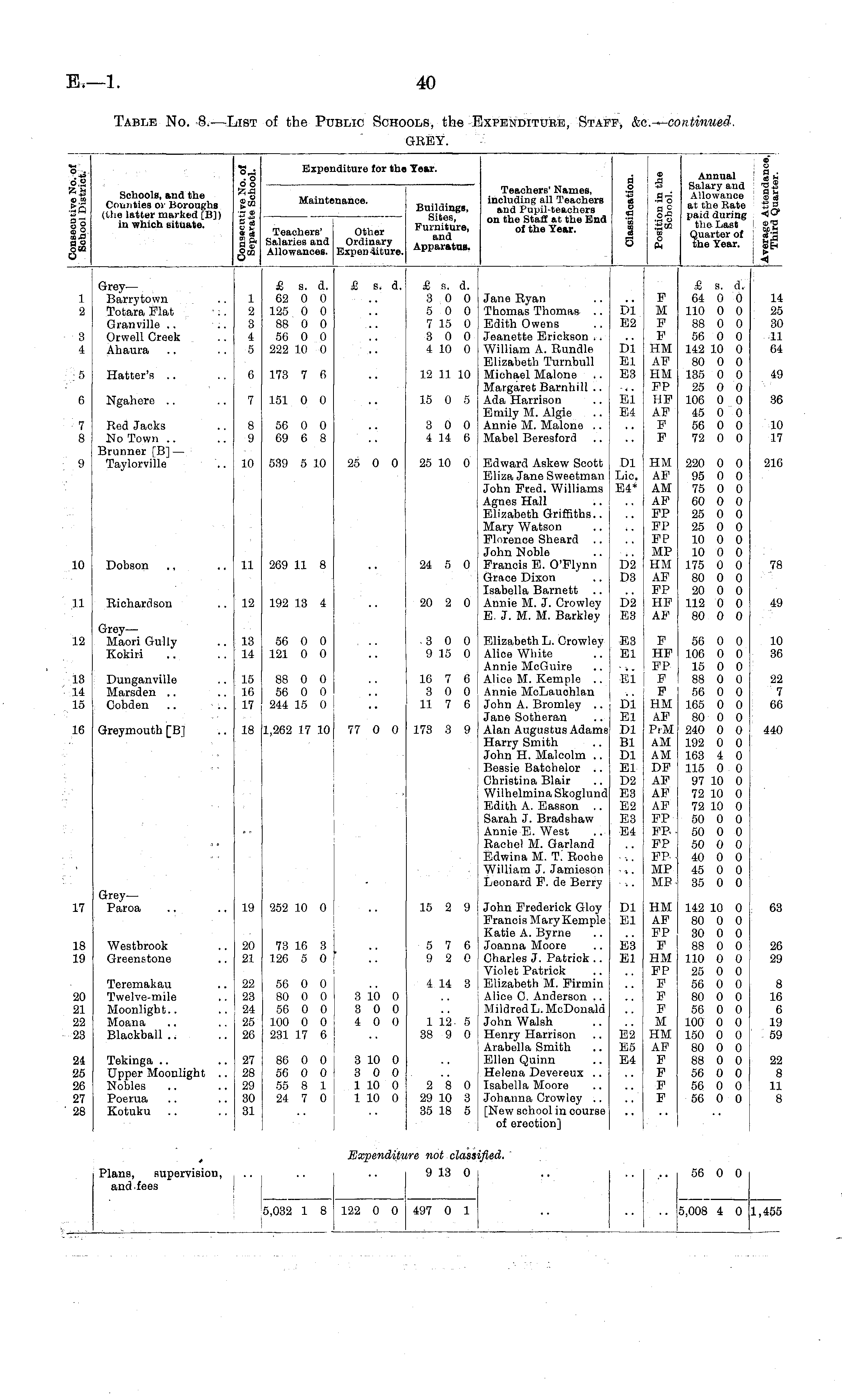 Table No. 8.—List of the Public Schools, the Expenditure, Staff, &c. —continued. GREY.