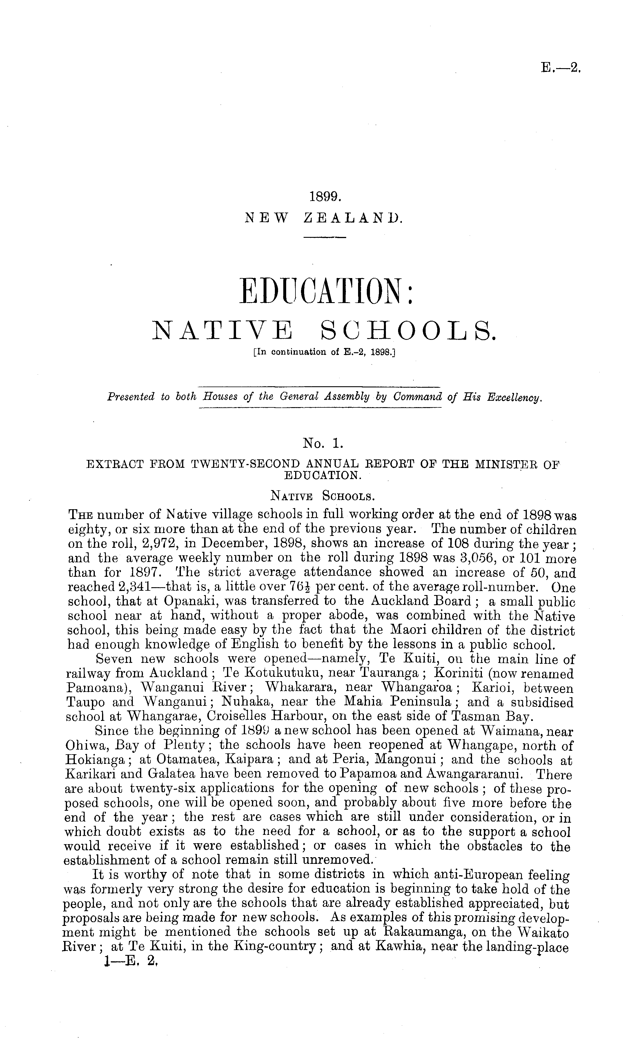 EDUCATION: NATIVE SCHOOLS. [In continuation of E.-2, 1898.]